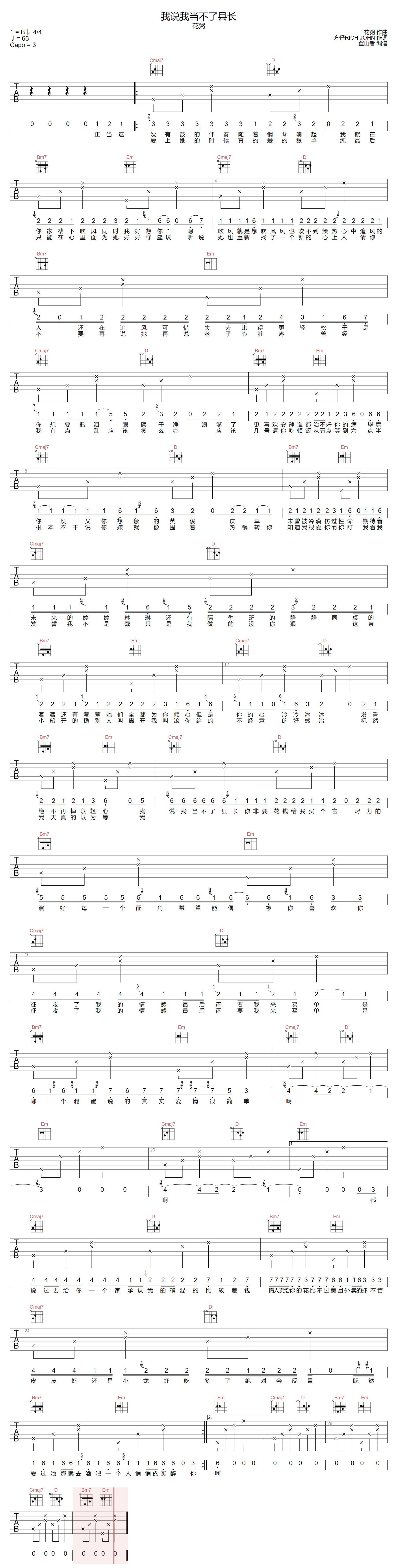 我说我当不了县长吉他谱 - 花粥 - G调吉他弹唱谱 - 原版
