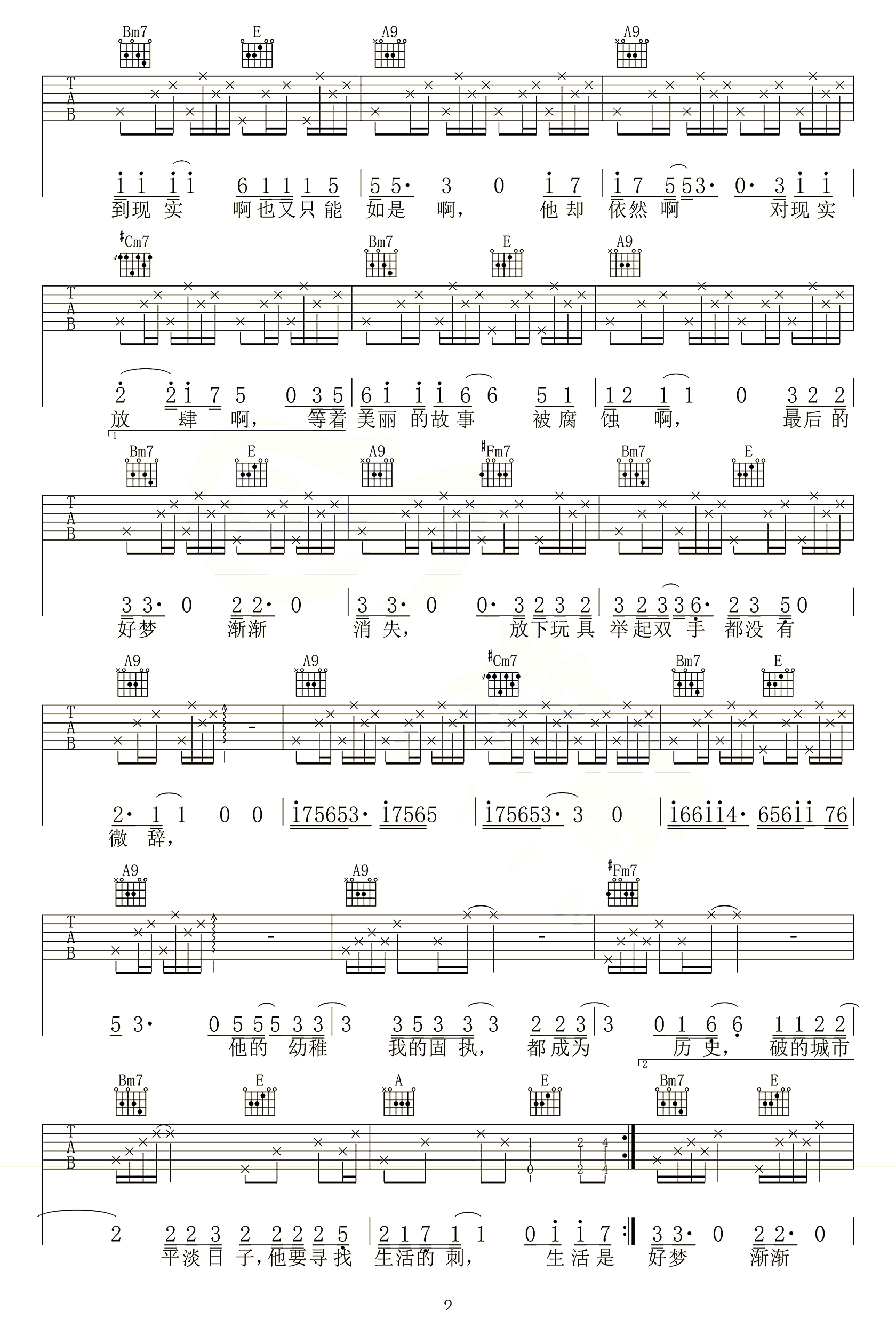 当前位置:琴谱网>吉他弹唱>平淡日子里的刺