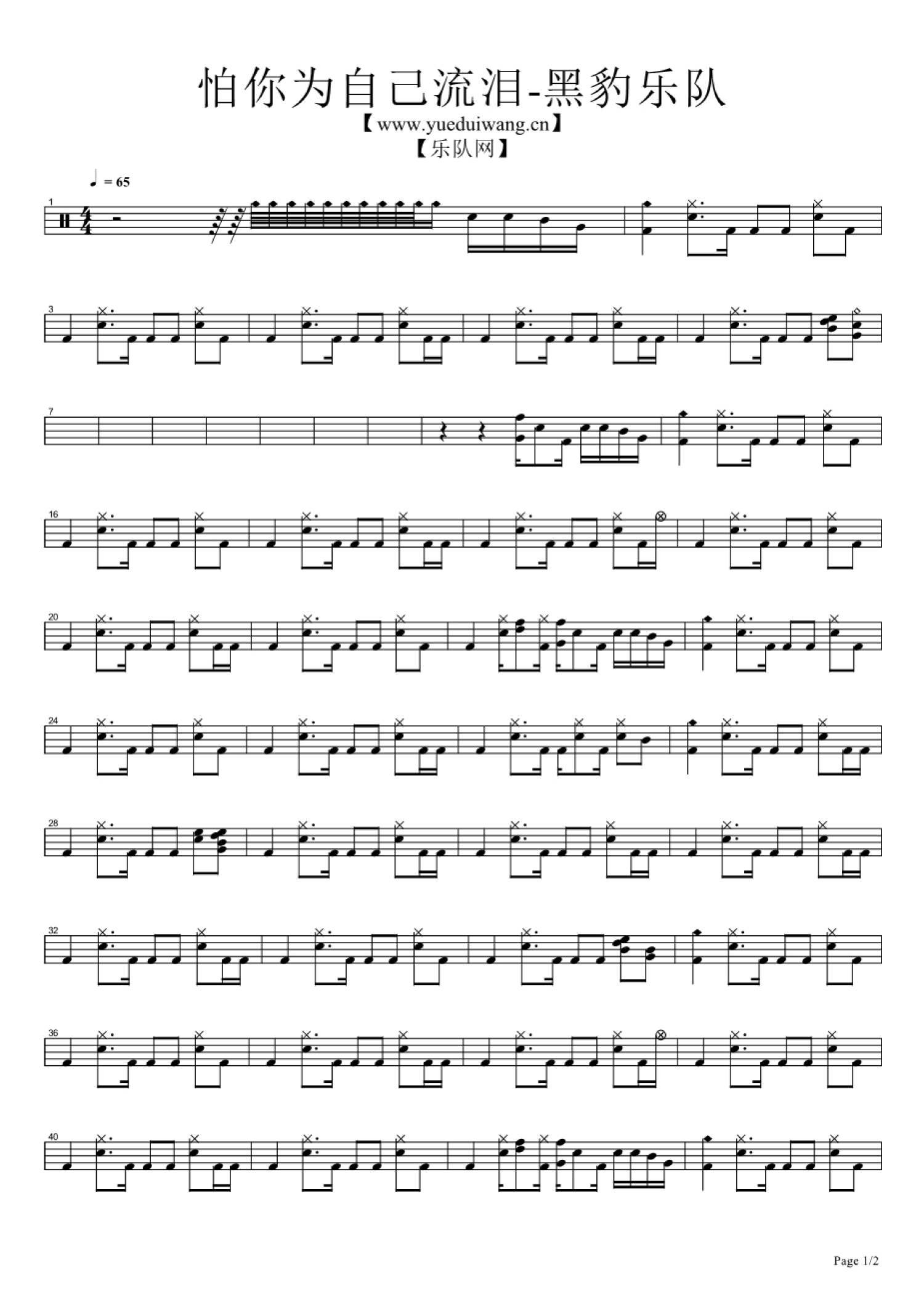 曲谱介绍: 怕你为自己流泪(架子鼓谱),黑豹乐队