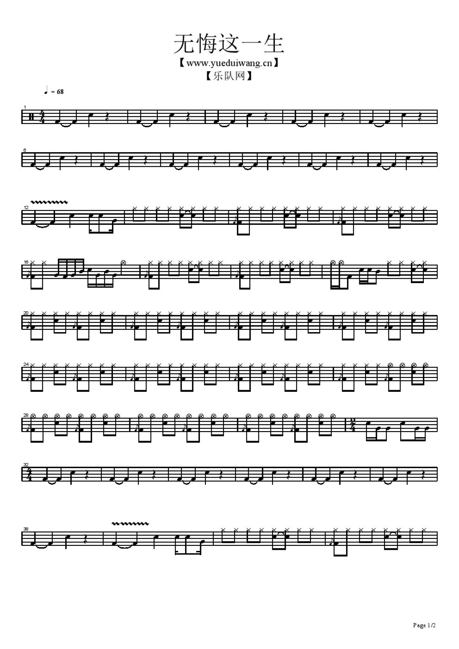 当前位置:琴谱网>架子鼓谱>无悔这一生