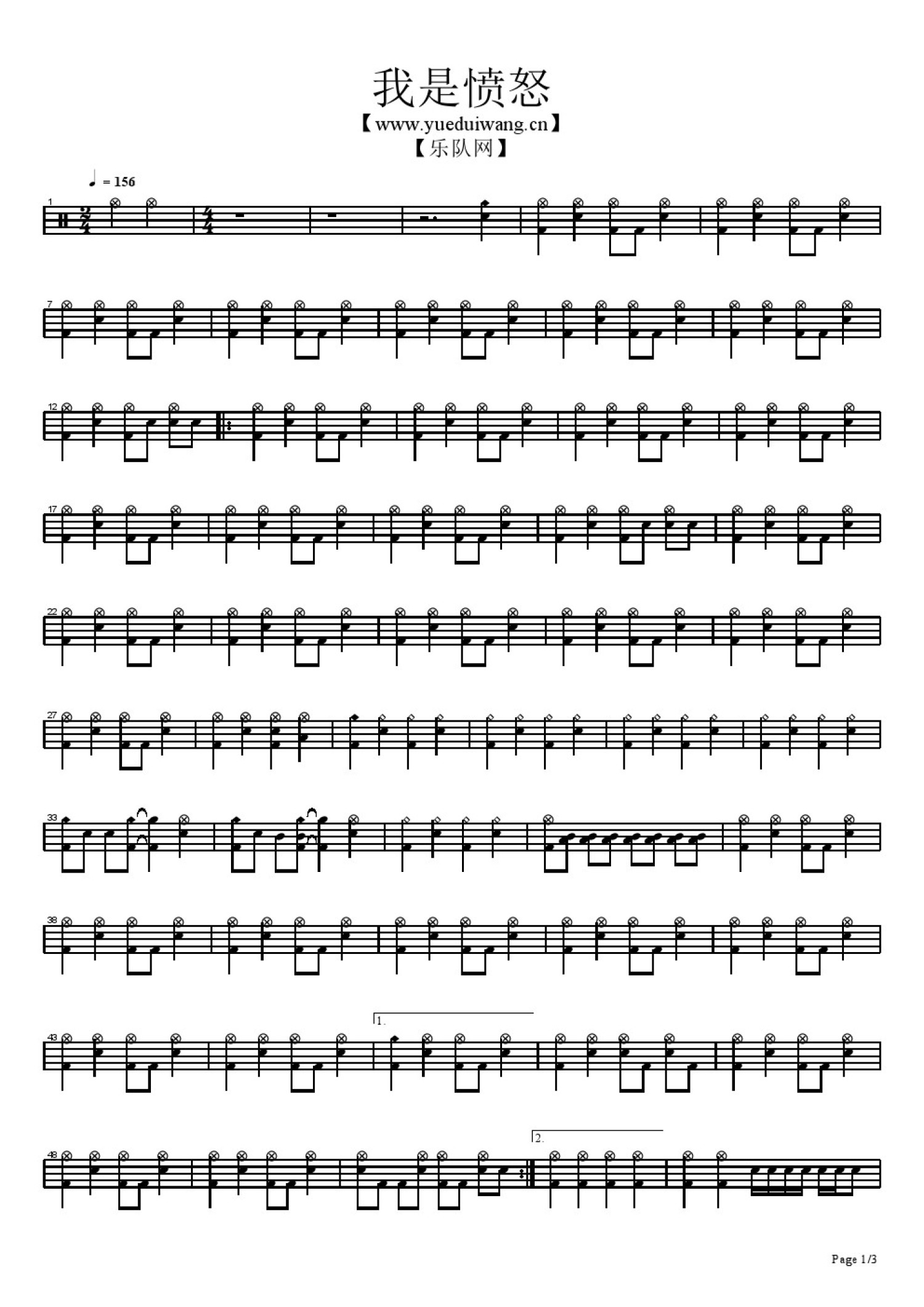 当前位置:琴谱网>架子鼓谱>我是愤怒