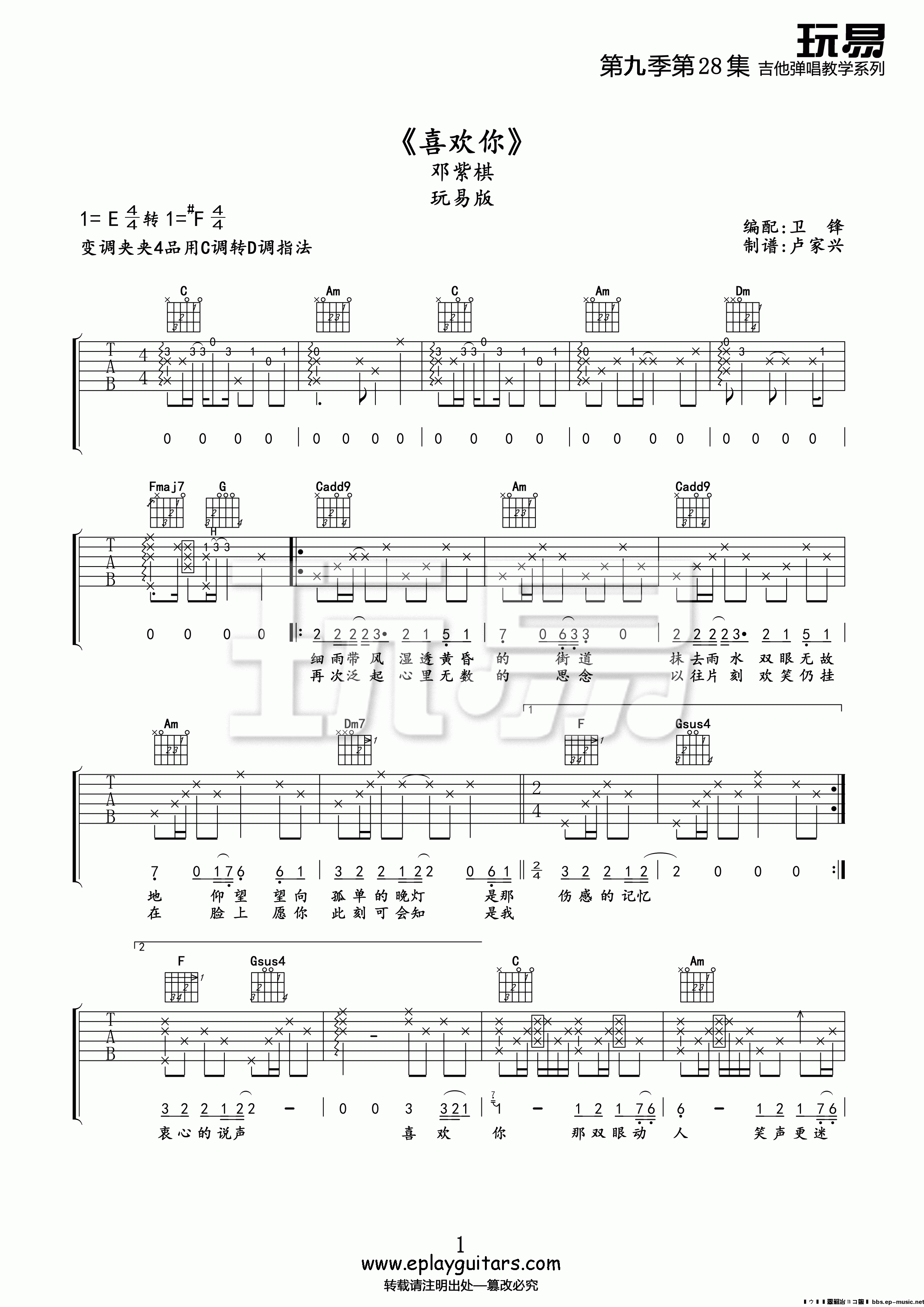 当前位置:琴谱网>吉他弹唱>喜欢你