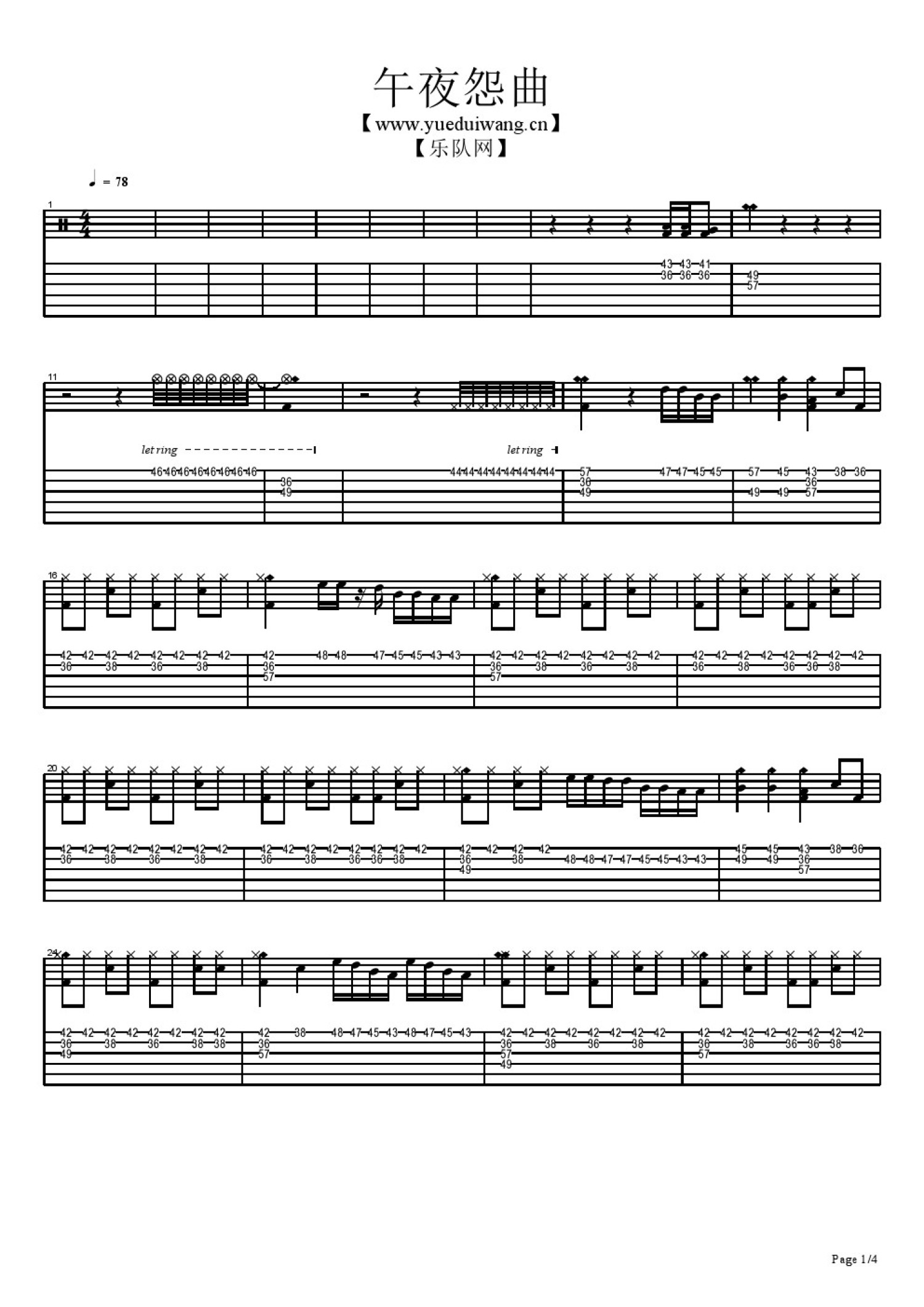 琴谱网为您精心推荐 午夜怨曲 高清图谱