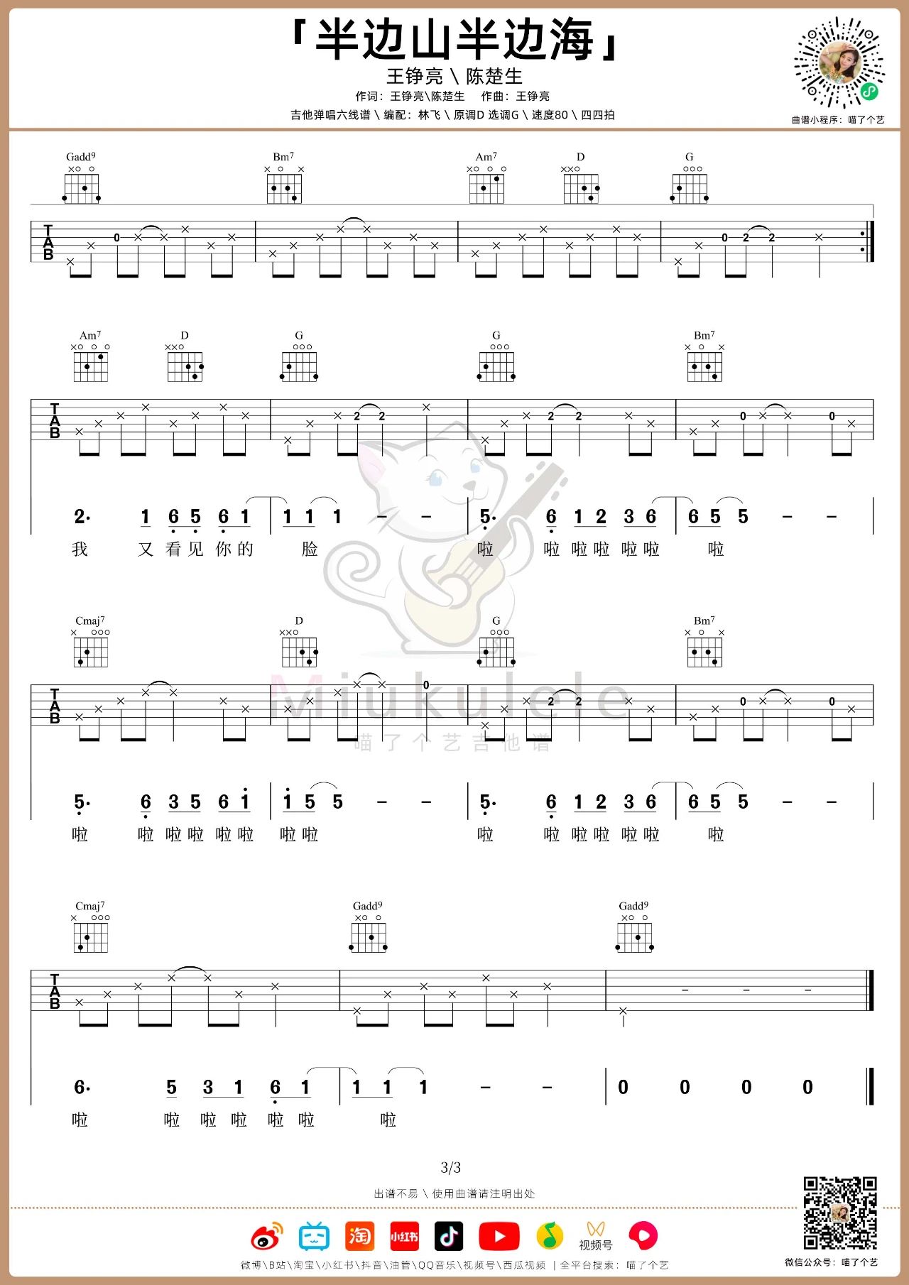 吉他弹唱G调来源:陈楚生/王铮亮_G调232 浏览2024-01-15 21:33发布图谱共3页