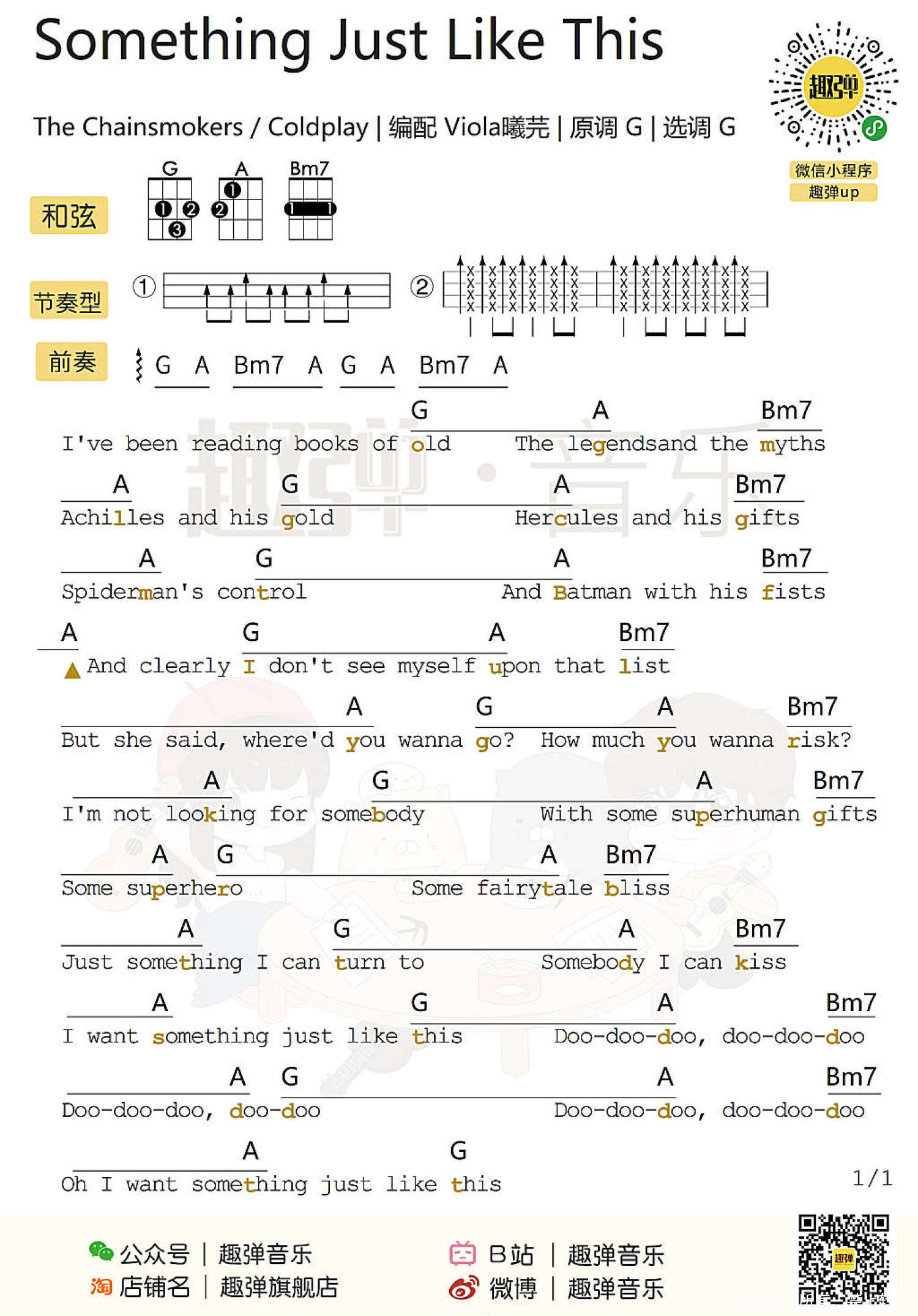 曲谱介绍: Something Just Like This   Something Just Like This ukulele谱