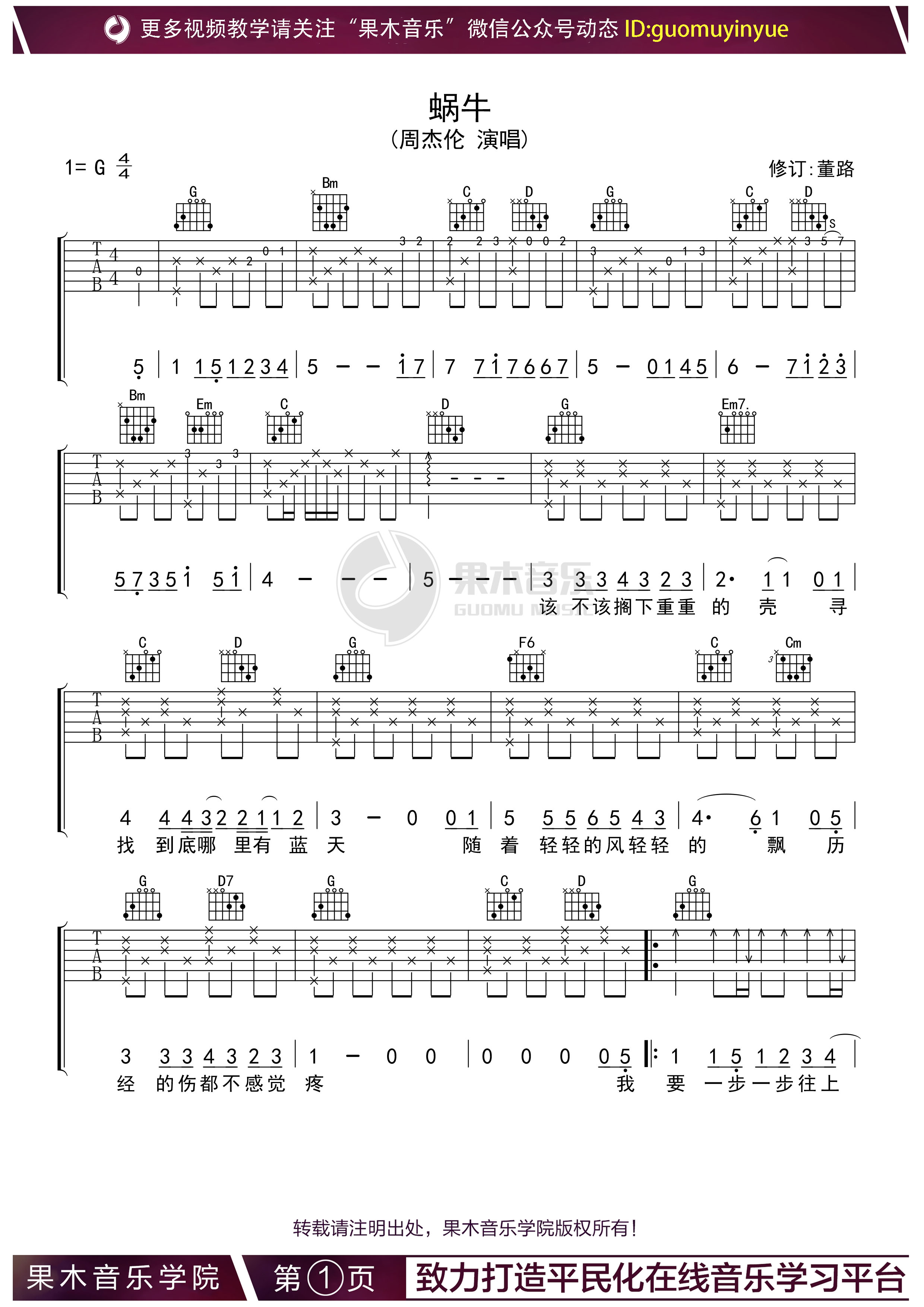 蜗牛吉他谱 - 周杰伦 - G调吉他弹唱谱