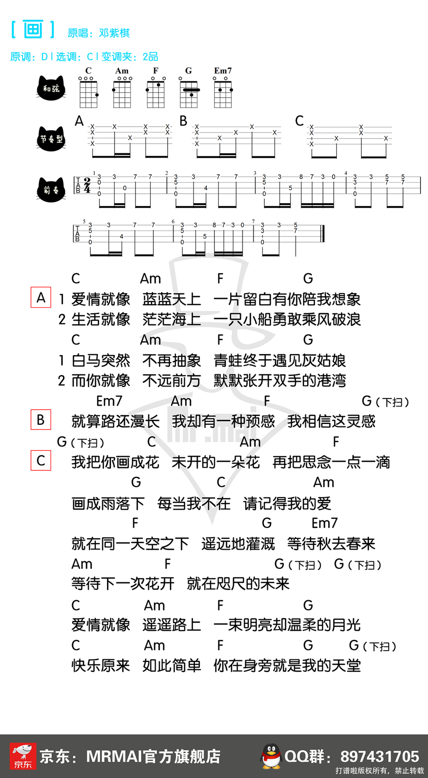 画尤克里里谱 - 邓紫棋