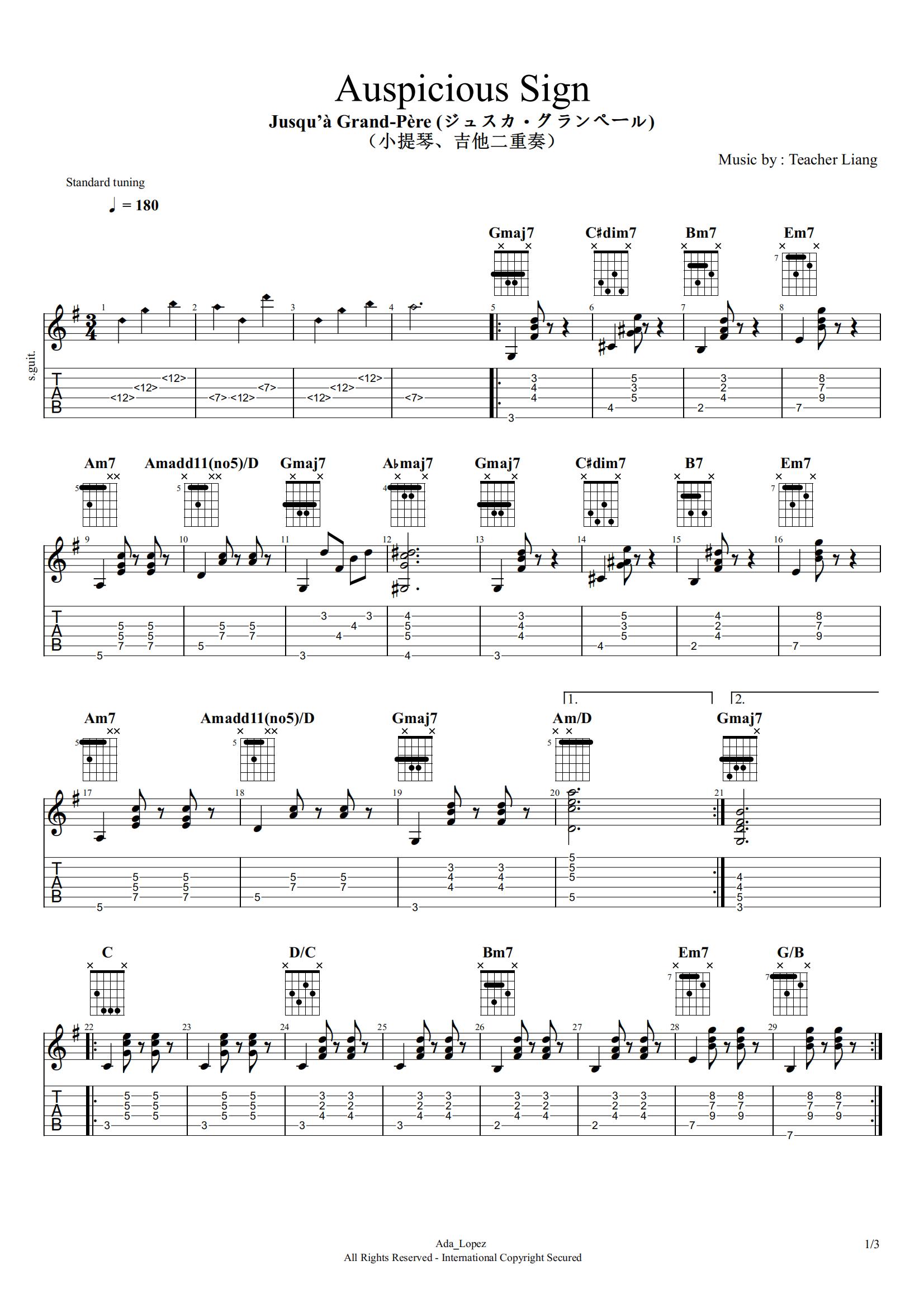 Auspicious Sign吉他谱 - Auspicious - 吉他独奏谱