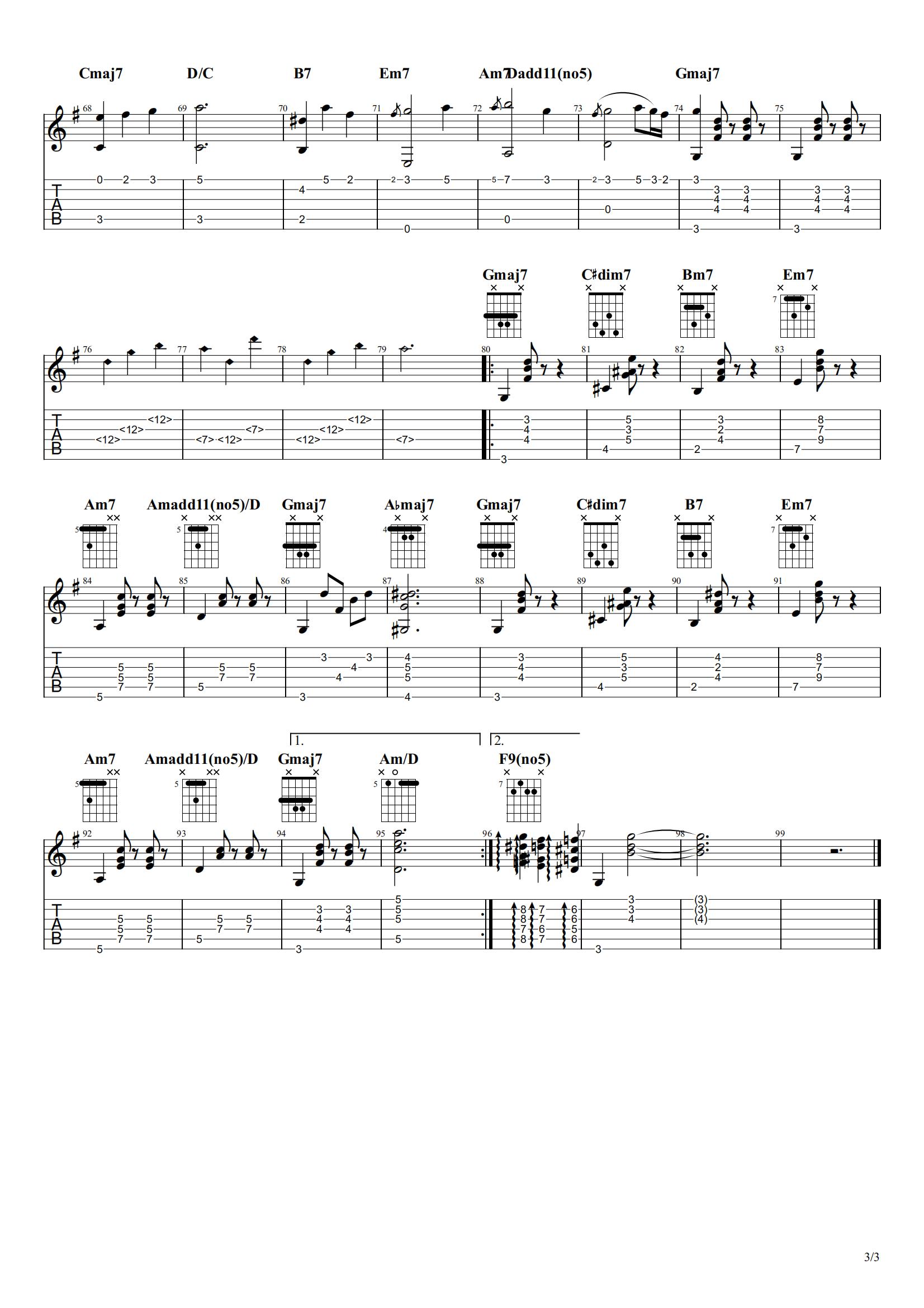 曲谱介绍: Auspicious Sign吉他谱,舒缓的旋律来自日本小提琴手(ジュスカ・グランペール)。曲调轻松,曲水流觞,好像春天的脚步就踏进了小心脏,周围都是芬芳的花香,还有清新的绿草味和呼吸的欢畅。希望这首好曲子,能给我们带来好心情好时光! 高质量扒谱,99%还原,难度较大,但非常好听,且可以提高和弦演奏基本功,附指弹演示音频试听。