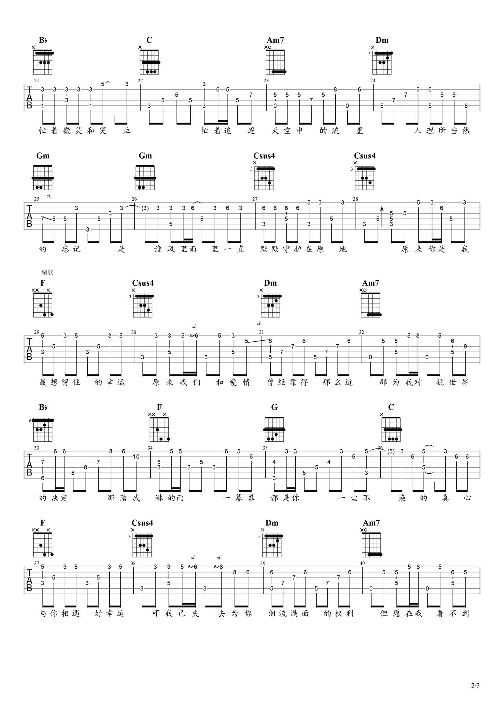 曲谱介绍: 田馥甄《小幸运》吉他独奏谱,共有3张高清图谱。