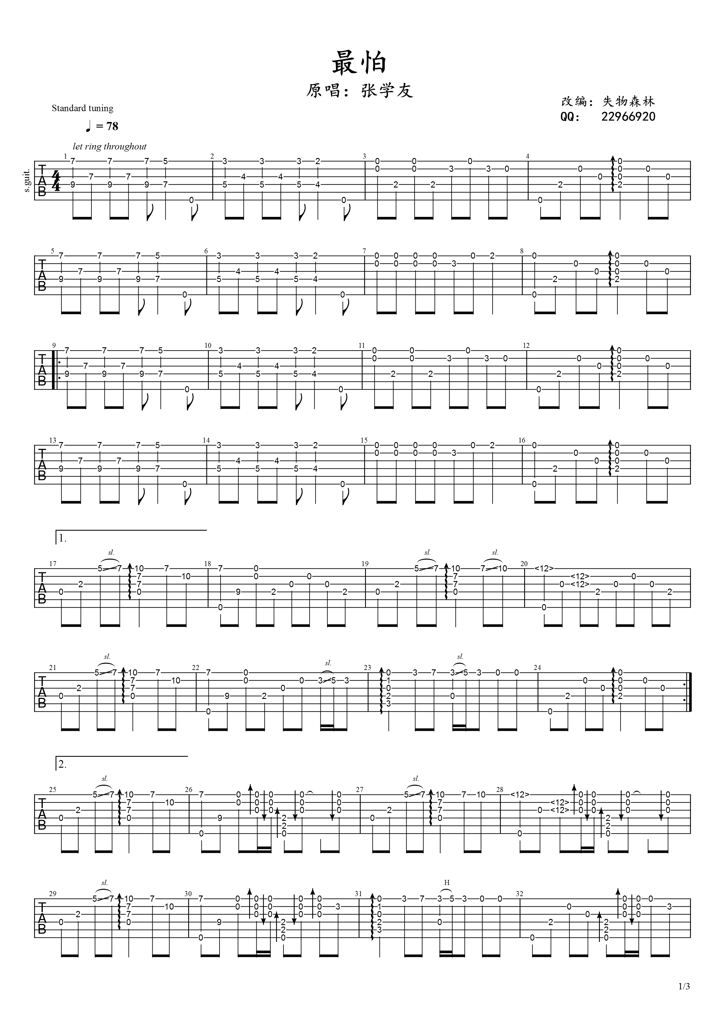 曲谱介绍: 张学友《最怕》吉他独奏谱,共有3张高清图谱。