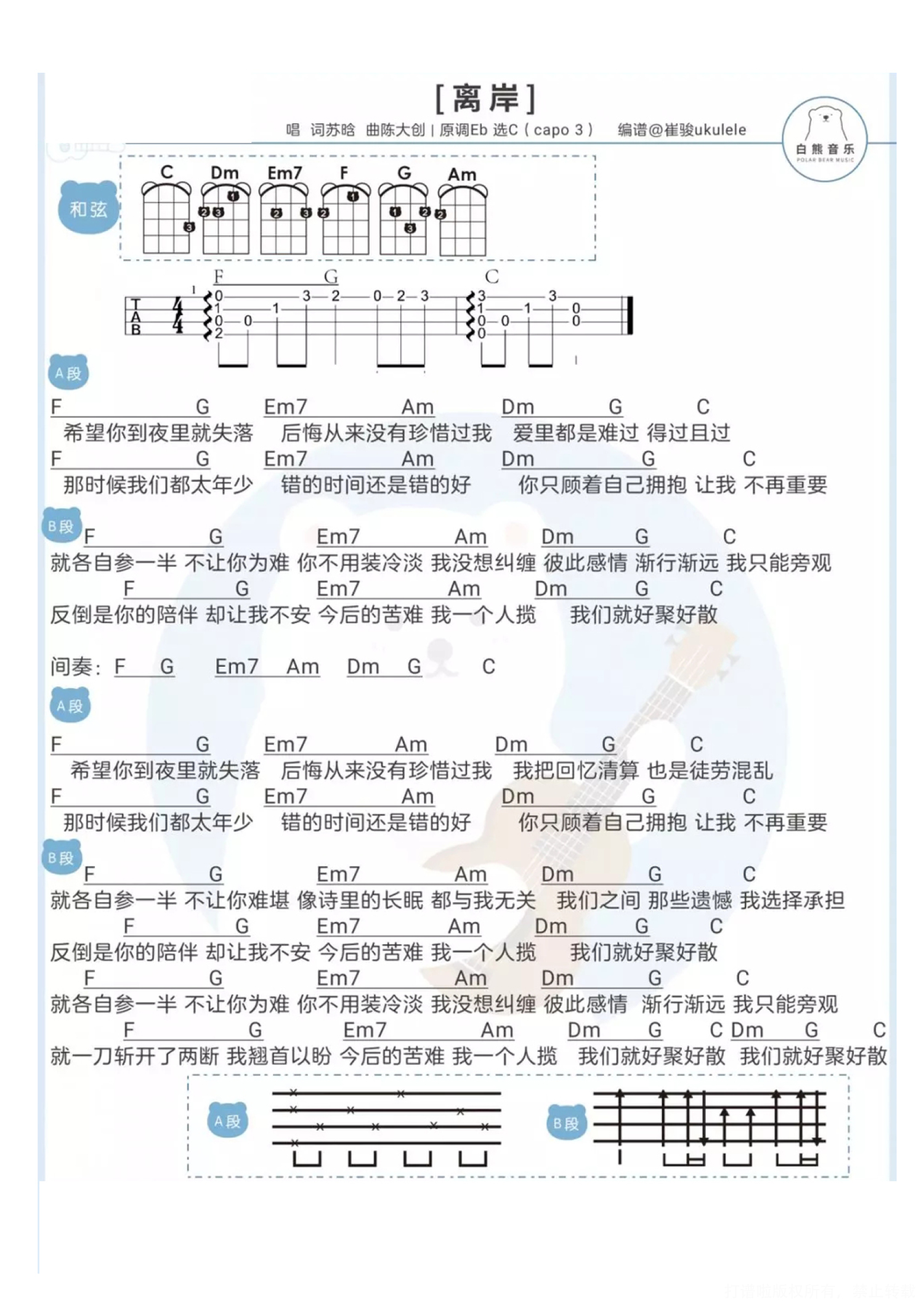 曲谱介绍: 离岸ukulele谱 离岸吉他谱