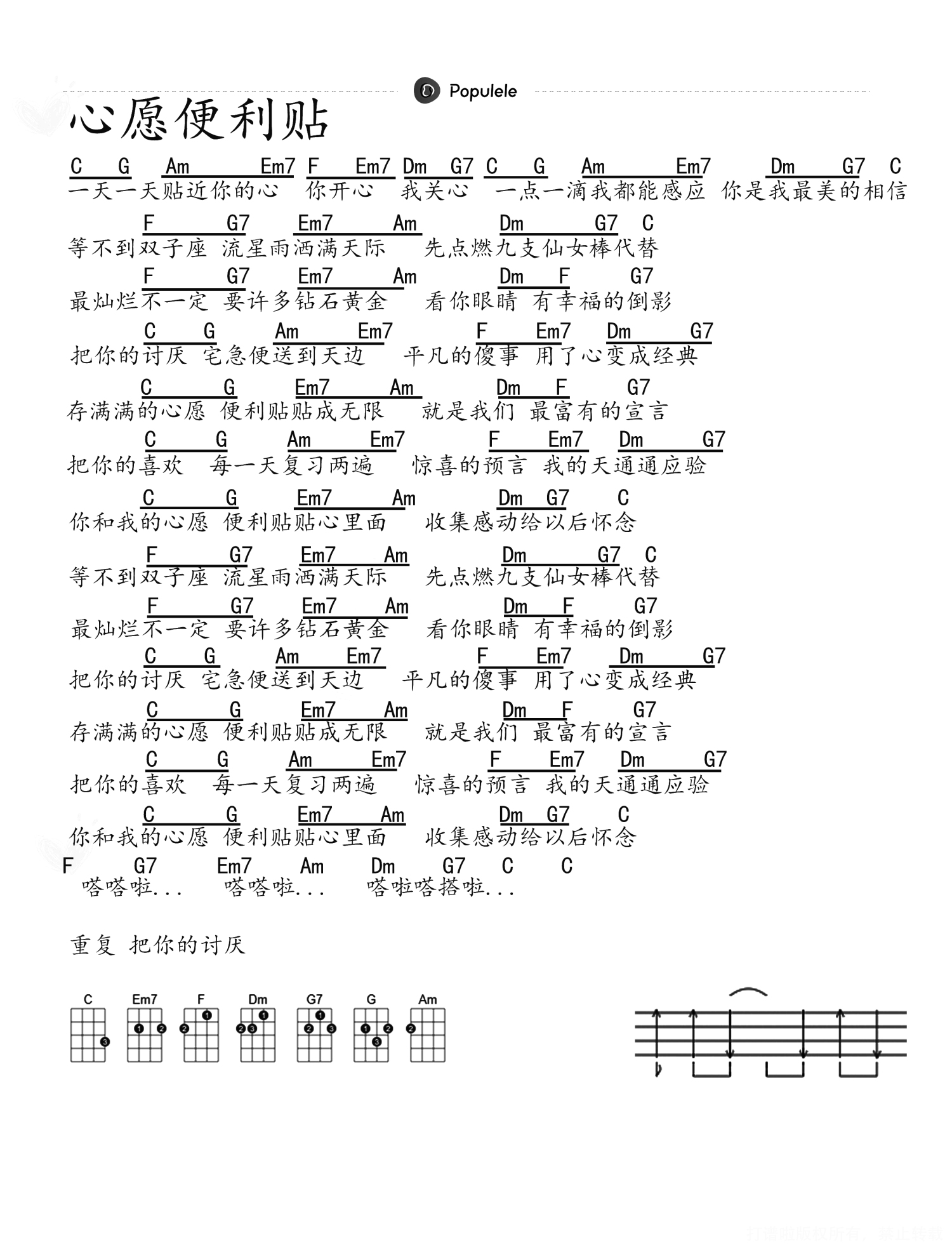 心愿便利贴尤克里里谱 - 吴忠明元若蓝