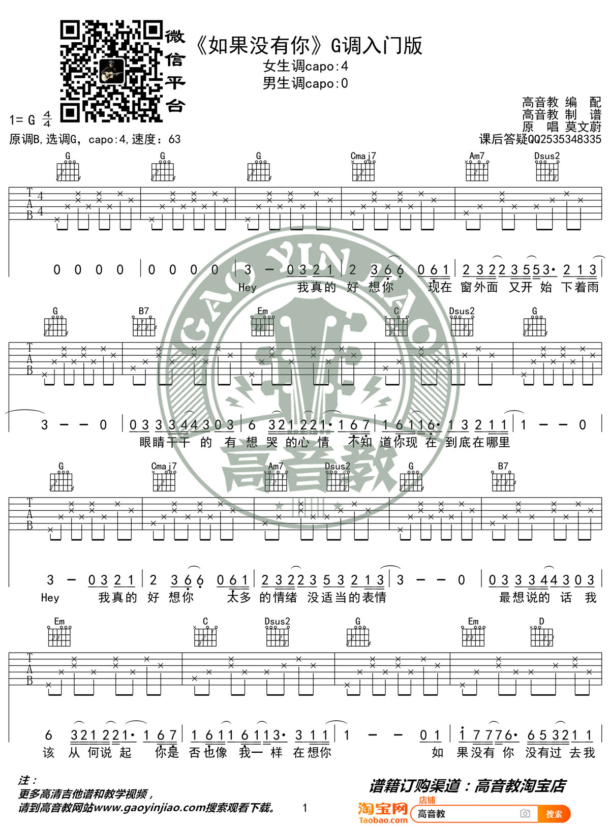 曲谱介绍: 莫文蔚演唱的一首歌曲,4/4拍的节奏,这首歌曲的原调为B调,这里曲谱采用了G调指法进行编配,演唱时夹变调夹4品可回到原调,也可根据个人实际嗓音情况选择。曲谱由琴谱网更新上传,来源于@高音教编配出品。爱情没有如果,任谁都无法重来,这也是大家之所以对爱情深信不疑的原因,如果没有你,多出来的爱我会留给自己。