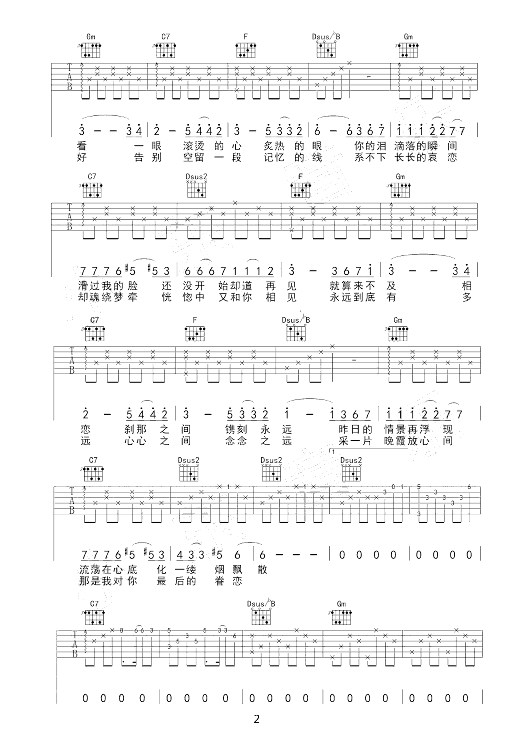 曲谱介绍: 蔡健雅演唱的一首歌曲,4/4拍的节奏,这首歌曲的原调为#F调,这里曲谱采用了F调指法进行编配,演唱时夹变调夹1品可回到原调,也可根据个人实际嗓音情况选择。曲谱由琴谱网更新上传,来源于@小东音乐编配出品。这首歌是电影《悟空传》的插曲,蔡健雅低声浅唱,唱腔冷静而内敛,淡雅中有种感人的温度。她的歌声中带着诗意的哀叹与不及的悔恨,带着丝丝忧伤,轻轻诉说一段悲伤的爱情故事。