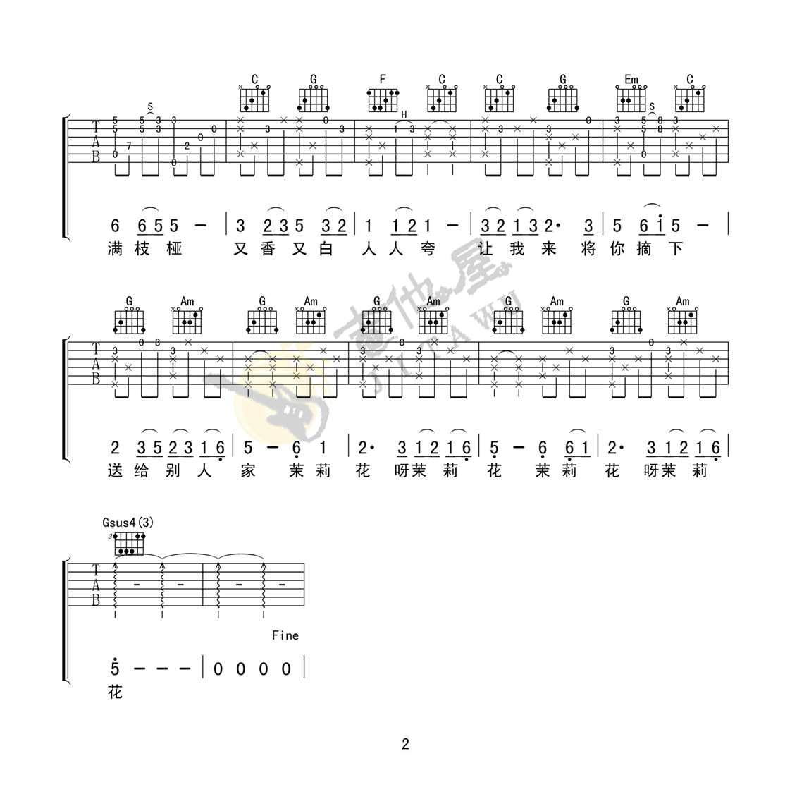 茉莉花吉他谱 - 吉他独奏谱