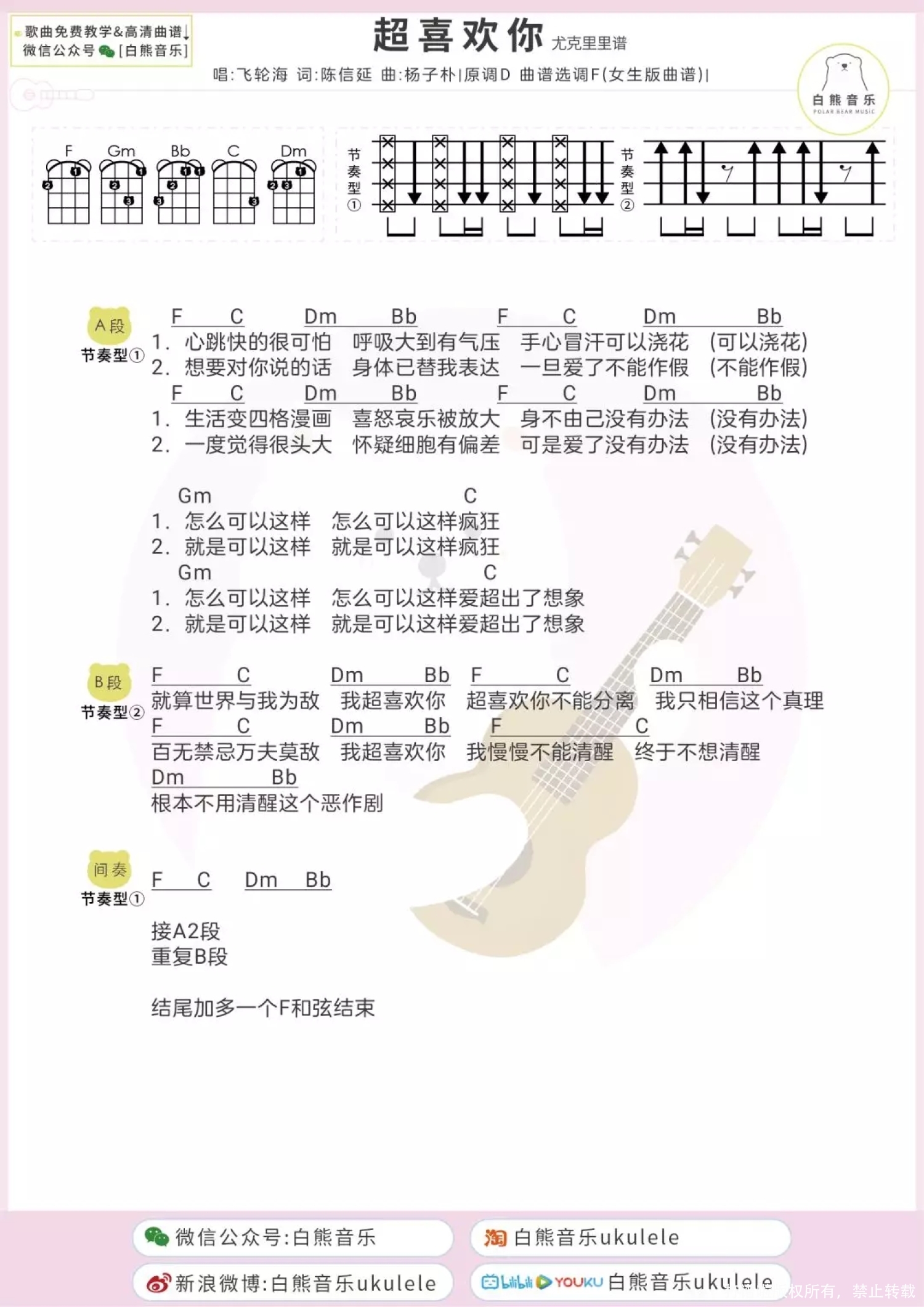 超喜欢你尤克里里谱 - 飞轮海/沈以诚