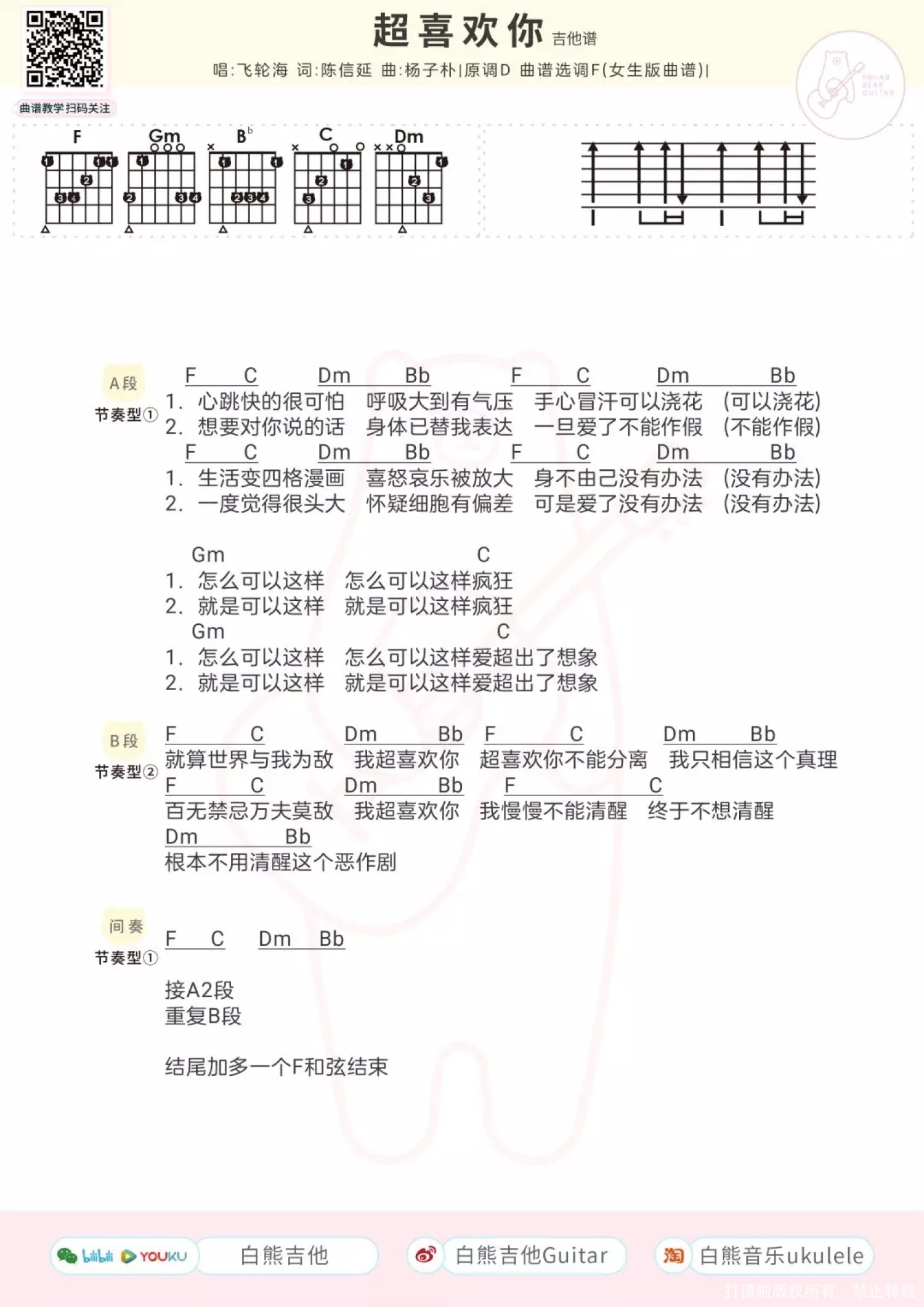 曲谱介绍: Ukulele弹唱|@草帽呀   Ukulele弹唱教学|@草帽呀   超喜欢你ukulele谱 男生/女生谱   超喜欢你吉他谱 男生/女生谱