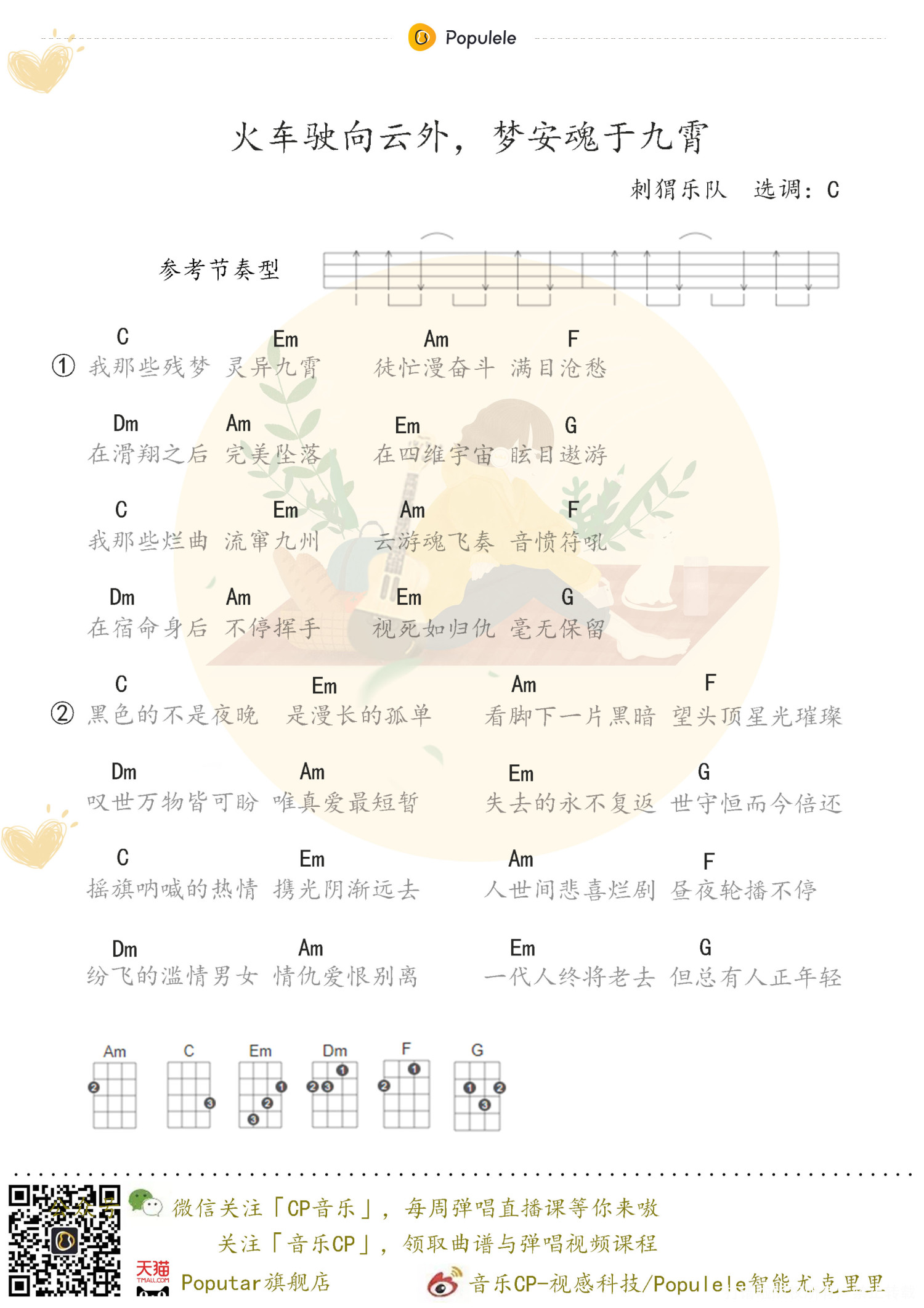 火车驶向云外,梦安魂于九霄尤克里里谱 - 刺猬乐队