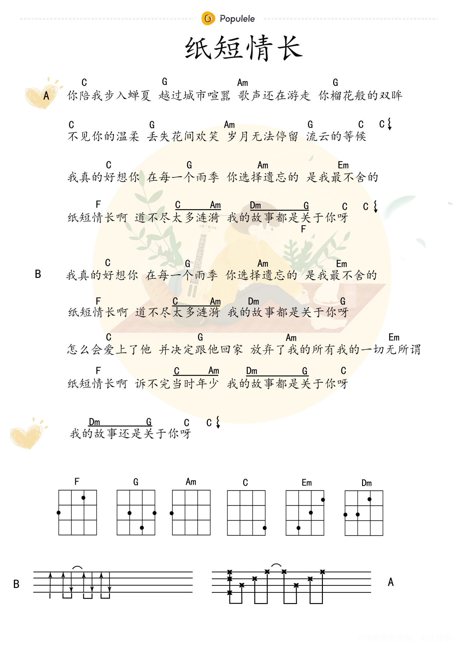 纸短情长尤克里里谱 - 烟把儿乐队