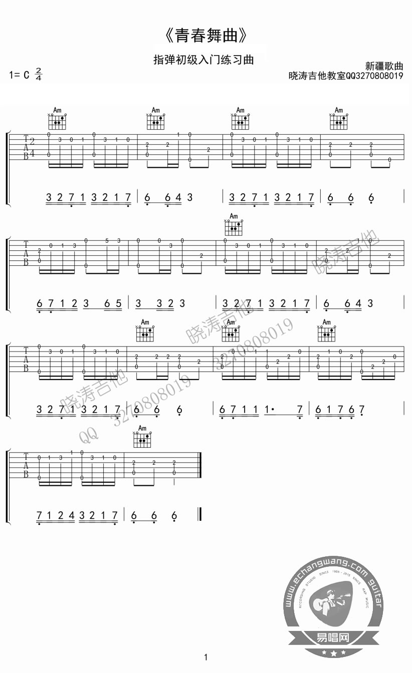 青春舞曲吉他谱 - 指弹吉他入门练习曲 - 吉他独奏谱