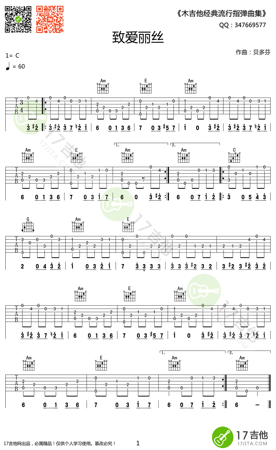 曲谱介绍: 致爱丽丝吉他谱,根据贝多芬的经典名曲改编,致爱丽丝指弹谱,曲谱为图片谱格式,致爱丽丝吉他独奏谱,高清六线谱C调编配。琴谱网推荐喜欢这首曲子的琴友们收藏。