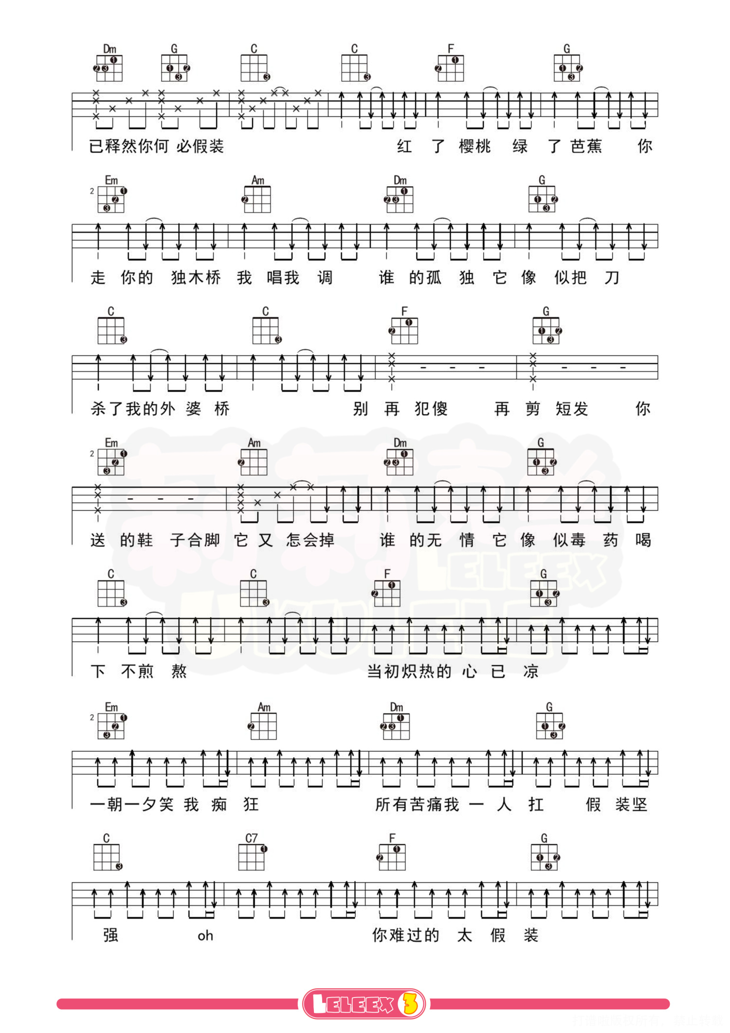 曲谱介绍: 《假装》尤克里里谱-陈雪凝 更多尤克里里曲谱/教学  关注@莉莉克丝Leleex