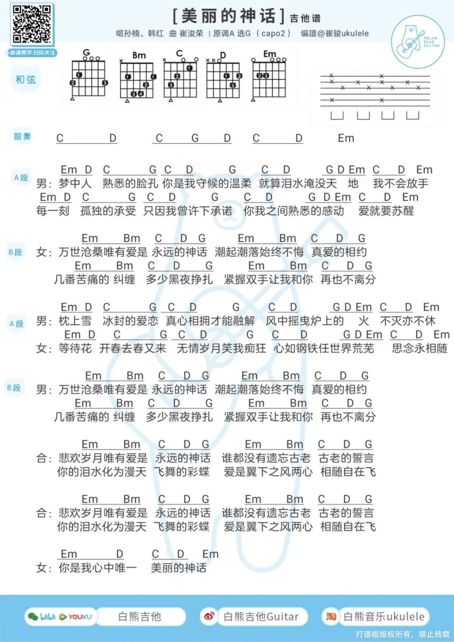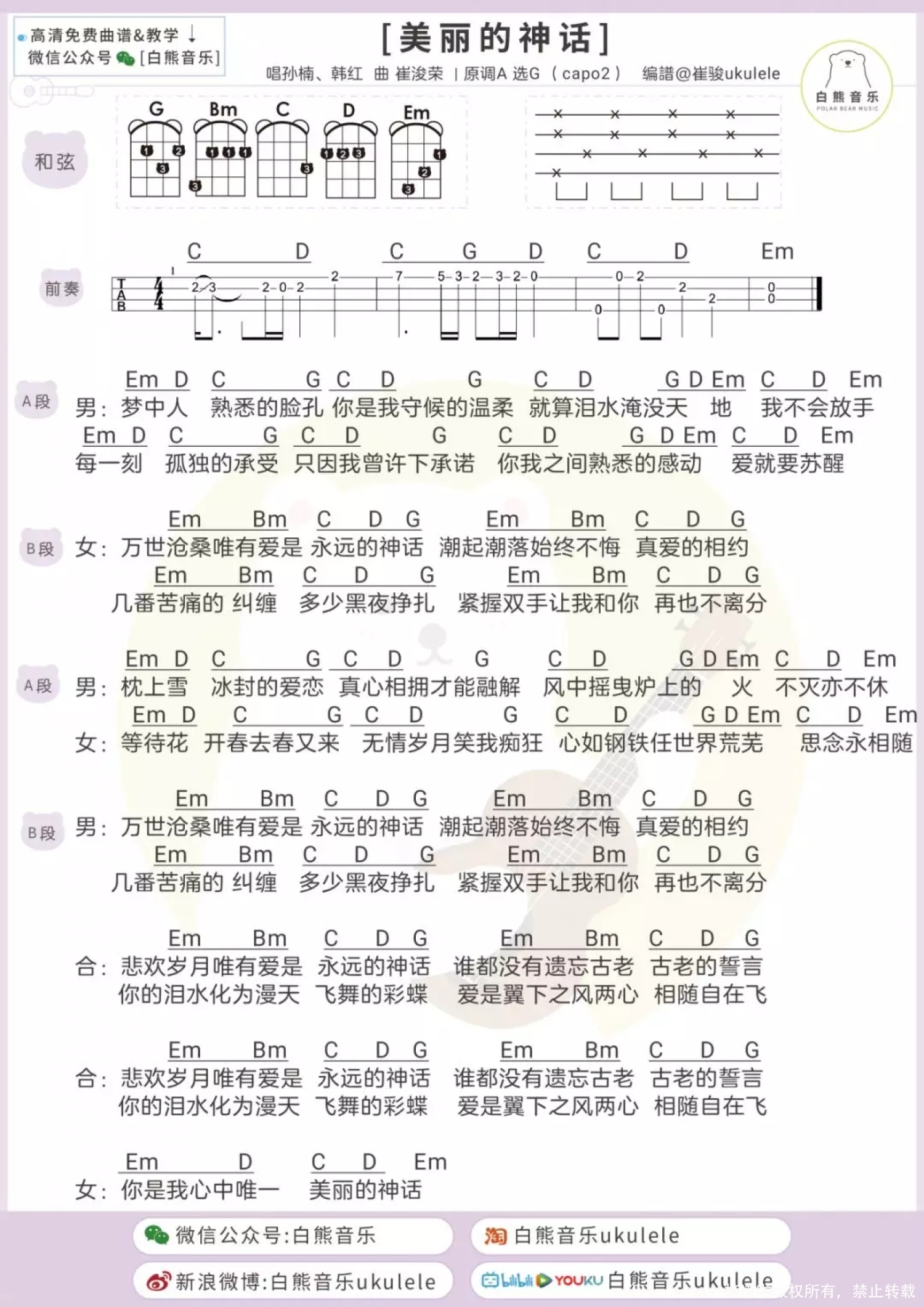 美丽的神话尤克里里谱 - 孙楠/韩红