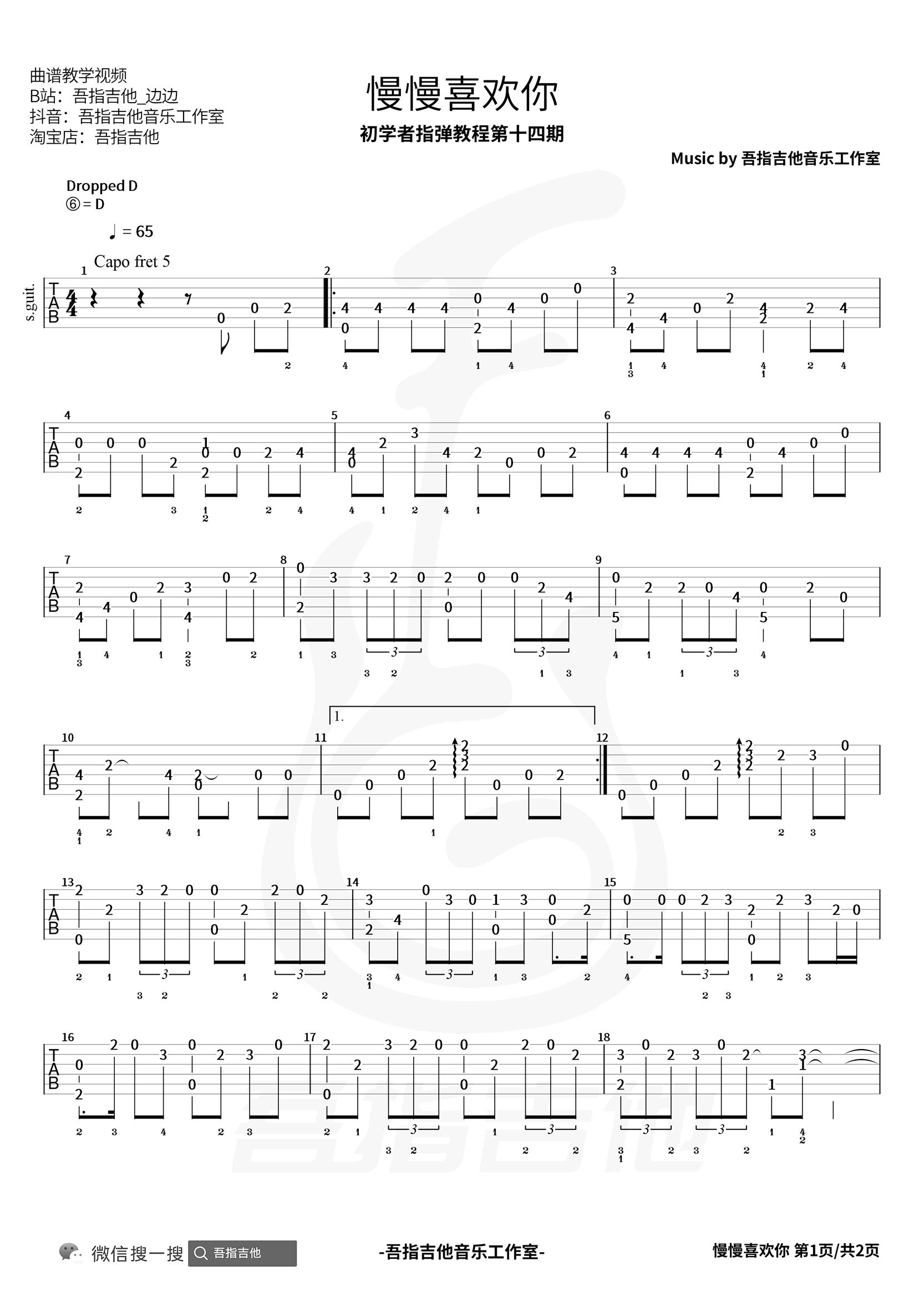 曲谱介绍: 莫文蔚《慢慢喜欢你》吉他独奏谱,共有3张高清图谱。