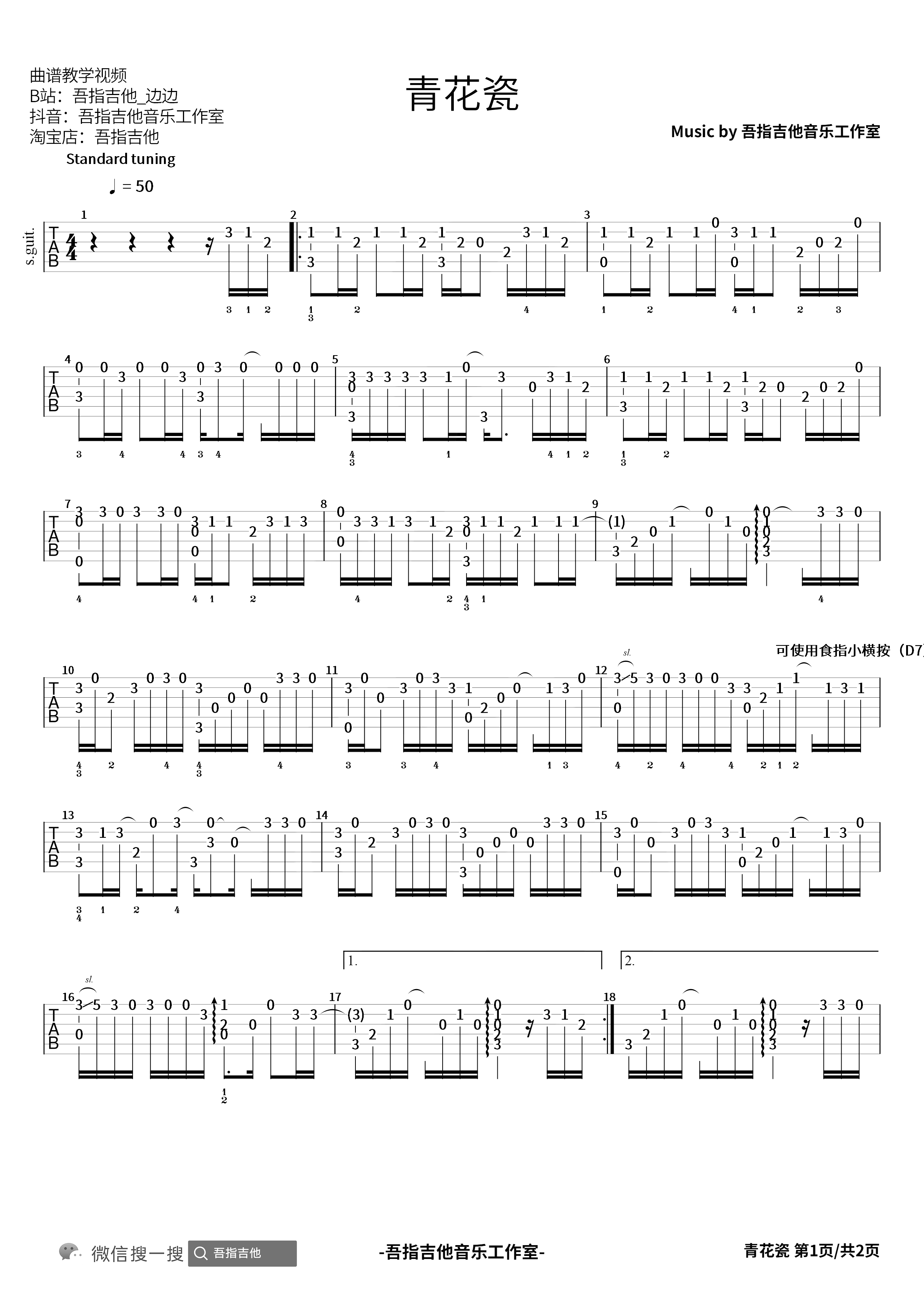 曲谱介绍: 周杰伦《青花瓷》吉他独奏谱,共有3张高清图谱。