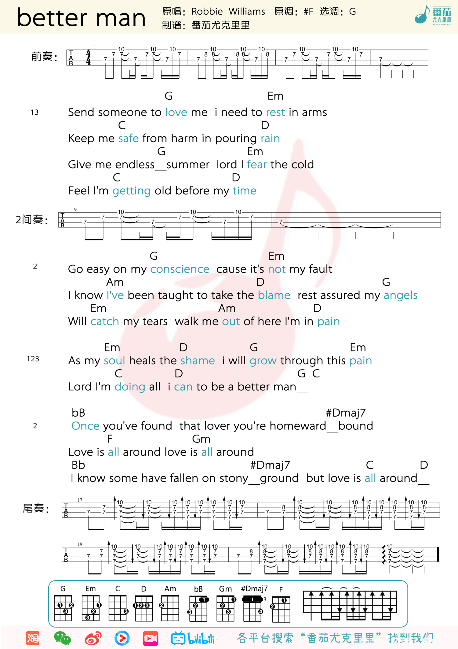 曲谱介绍: Better man ukulele教学   Better man ukulele谱