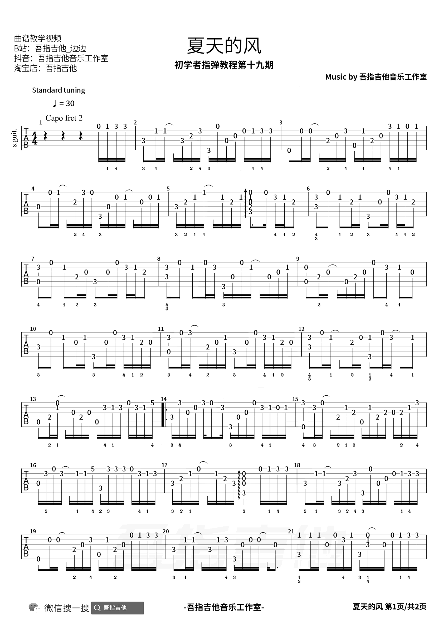 曲谱介绍: 温岚《夏天的风》吉他独奏谱,共有3张高清图谱。
