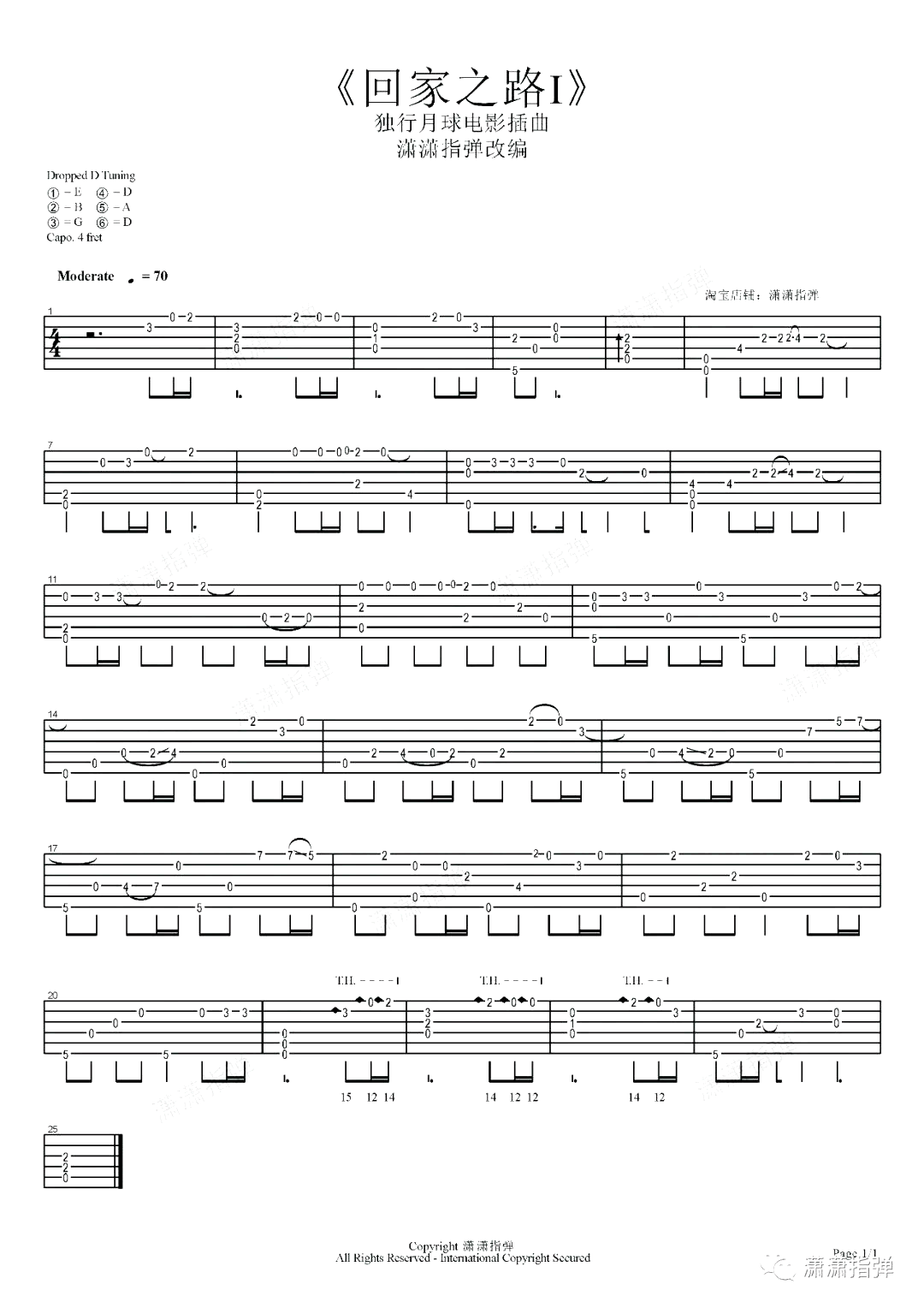 曲谱介绍: 主题曲《独行月球》吉他独奏谱,共有2张高清图谱,免翻页排版设计。