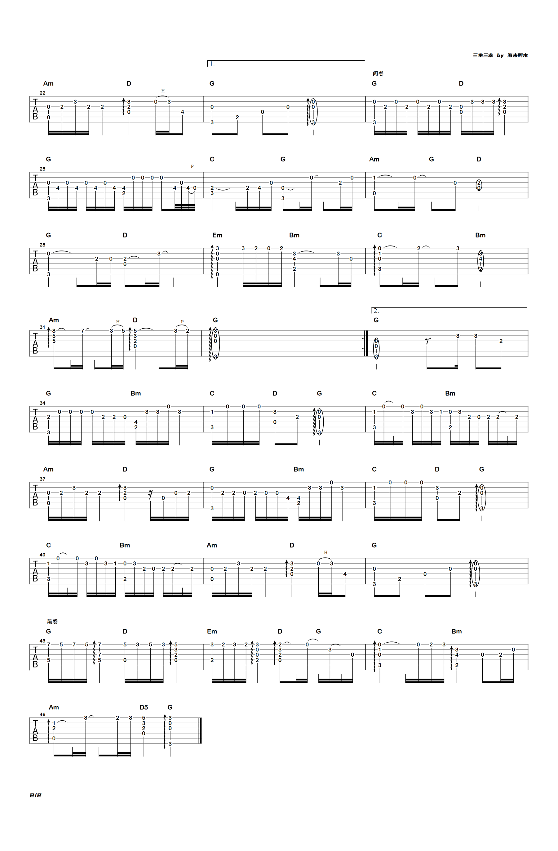 三生三幸吉他谱 - 海来阿木 - G调吉他独奏谱
