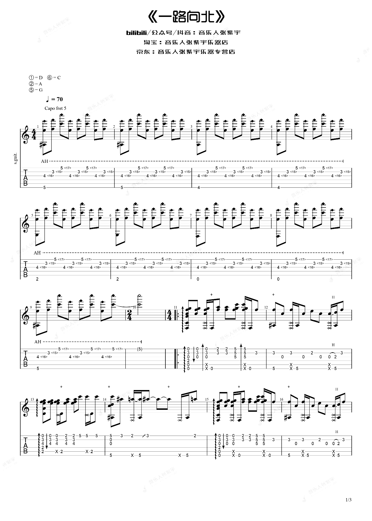 曲谱介绍: 周杰伦《一路向北》吉他独奏谱,共有4张高清图谱。