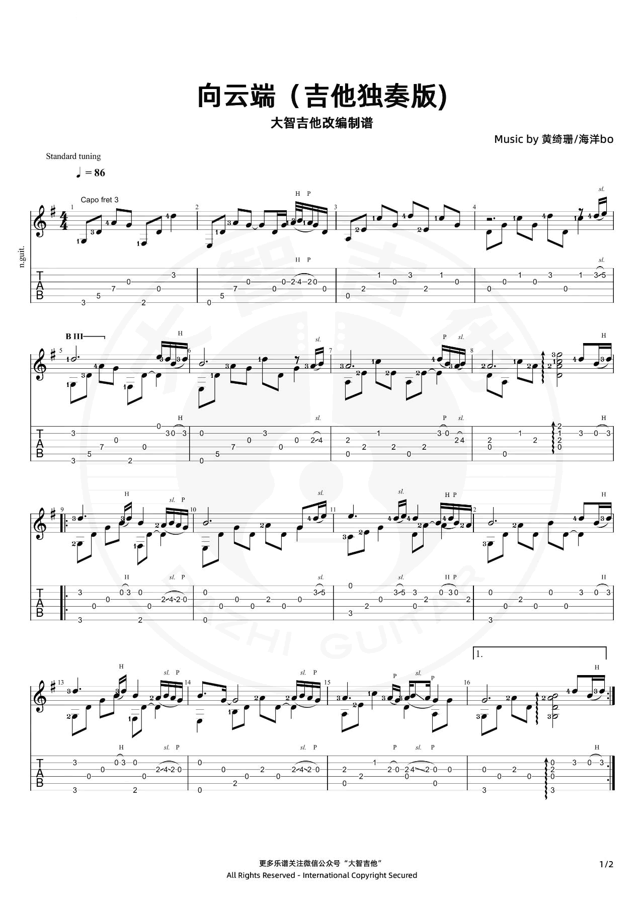 当前位置:琴谱网>吉他独奏>向云端
