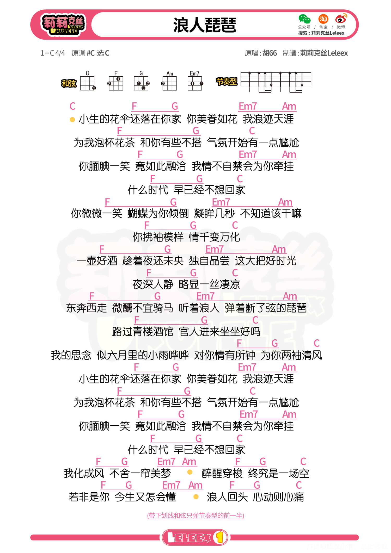 曲谱介绍: 《浪人琵琶》尤克里里谱 更多尤克里里曲谱/教学  关注@莉莉克丝Leleex