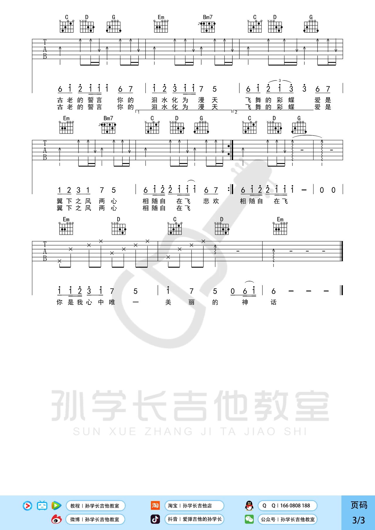 曲谱介绍: “万世沧桑唯有爱是永远的神话,潮起潮落始终不悔真爱的相约。”神话插曲《美丽的神话》,愿爱不仅仅是最美丽的神话,亦是最真实、最可触摸的存在。当走过岁月悲欢和命运无常,愿你还有可以思念可以惦记的人。美丽的神话吉他弹唱谱,来自孙学长编配吉他弹唱谱,G调和弦指法版,演奏难度评级★★★☆☆,男生演奏变调夹夹第二品,女生夹第五品。