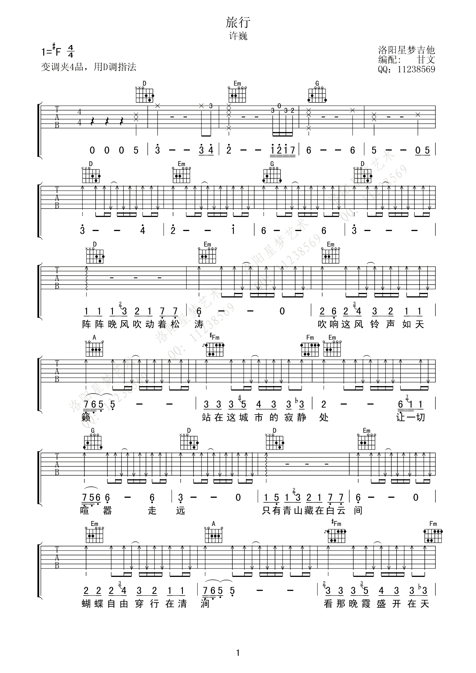 旅行吉他谱 - 许巍 - D调吉他弹唱谱