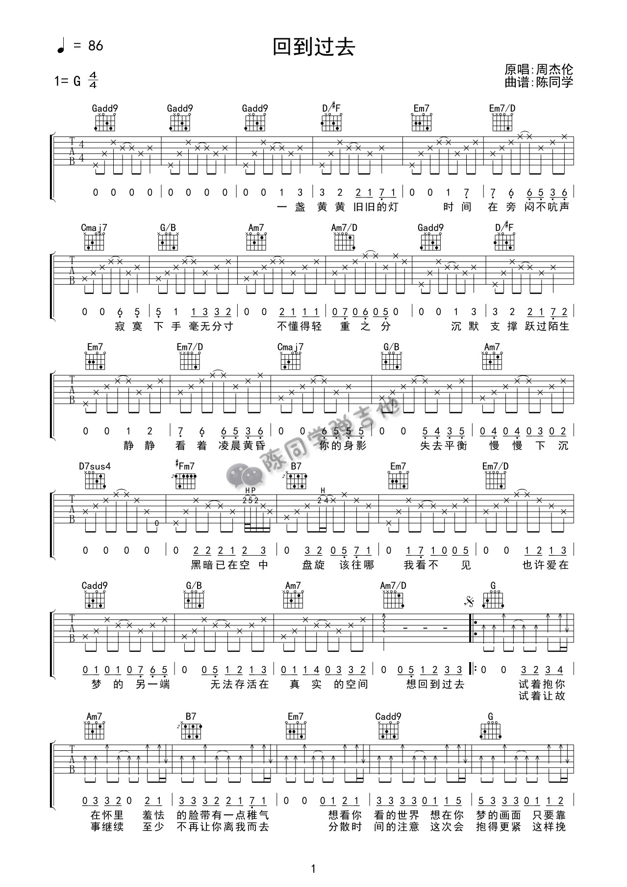 回到过去吉他谱 - 周杰伦 - G调吉他弹唱谱