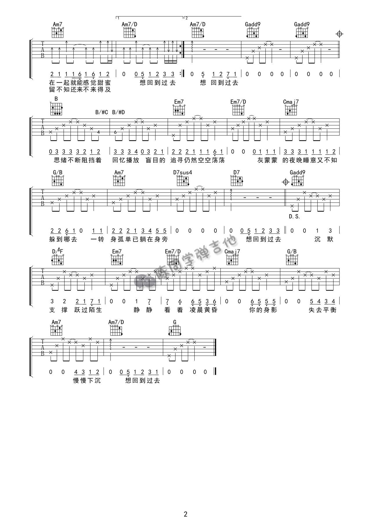 曲谱介绍: 周杰伦《回到过去》,周杰伦的经典歌曲太多,而这首歌只听名字便让人勾起心中的回忆,还有那未完成的遗憾。过去的情感可以忘记,未来的生活大家还得继续。回到过去吉他弹唱谱,G调版吉他六线谱,来自陈同学编配。这首歌的伴奏型是比较简单基础的,和弦用了些色彩和弦,还有一些转位,整体的难度★★☆☆☆。