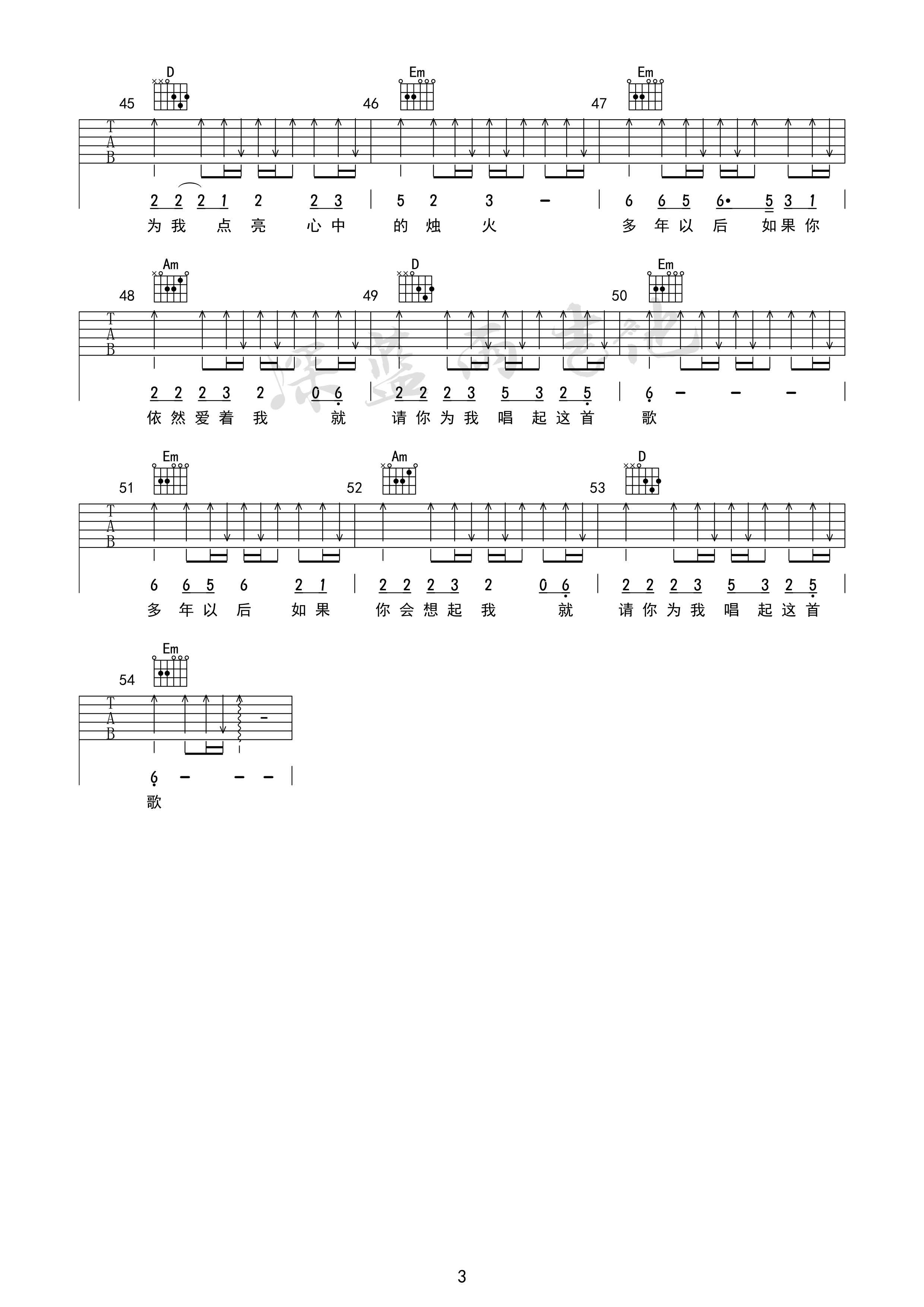 多年以后吉他谱 - 大欢 - G调吉他弹唱谱