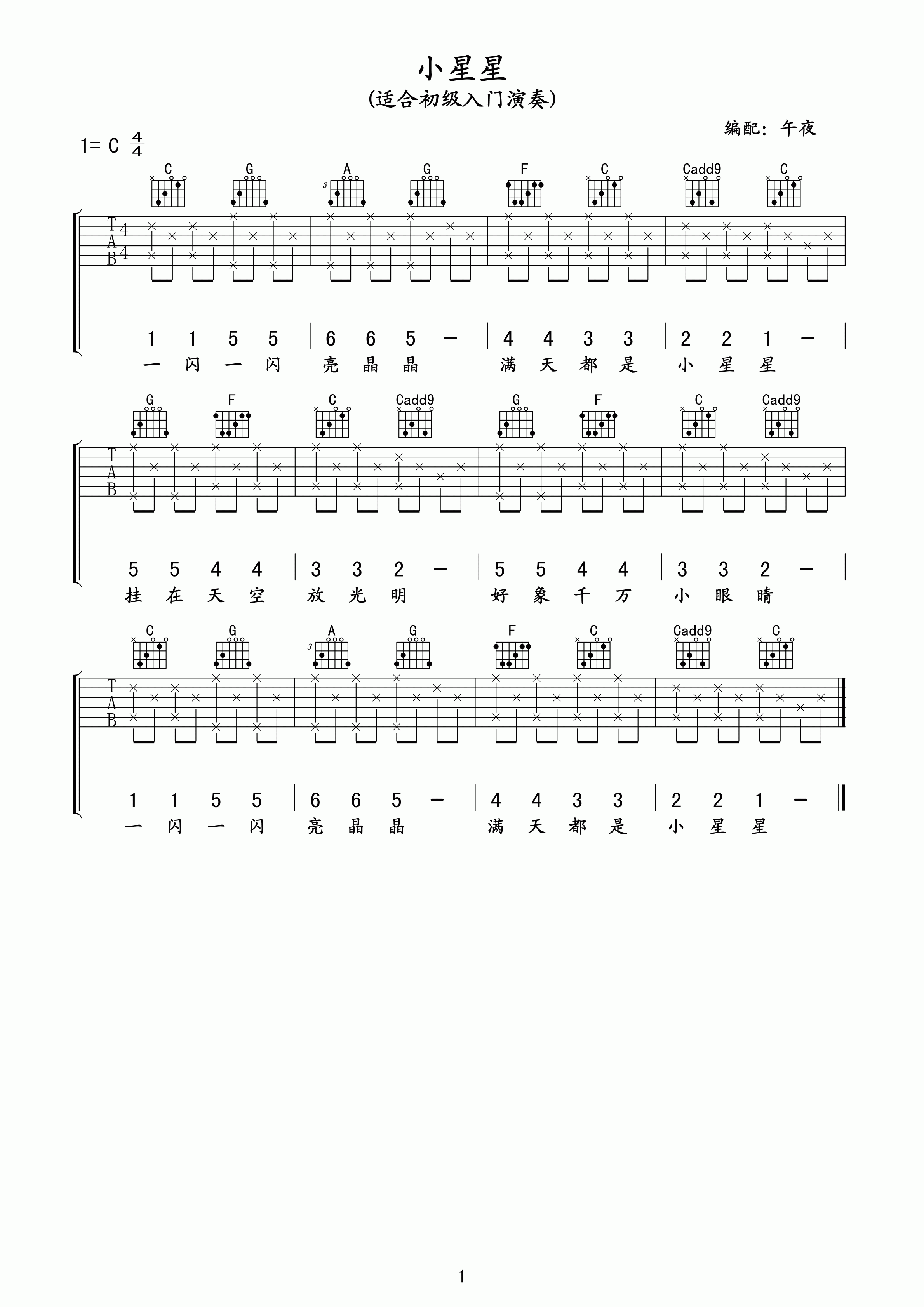 小星星吉他谱 - 经典入门儿歌 - 吉他弹唱谱
