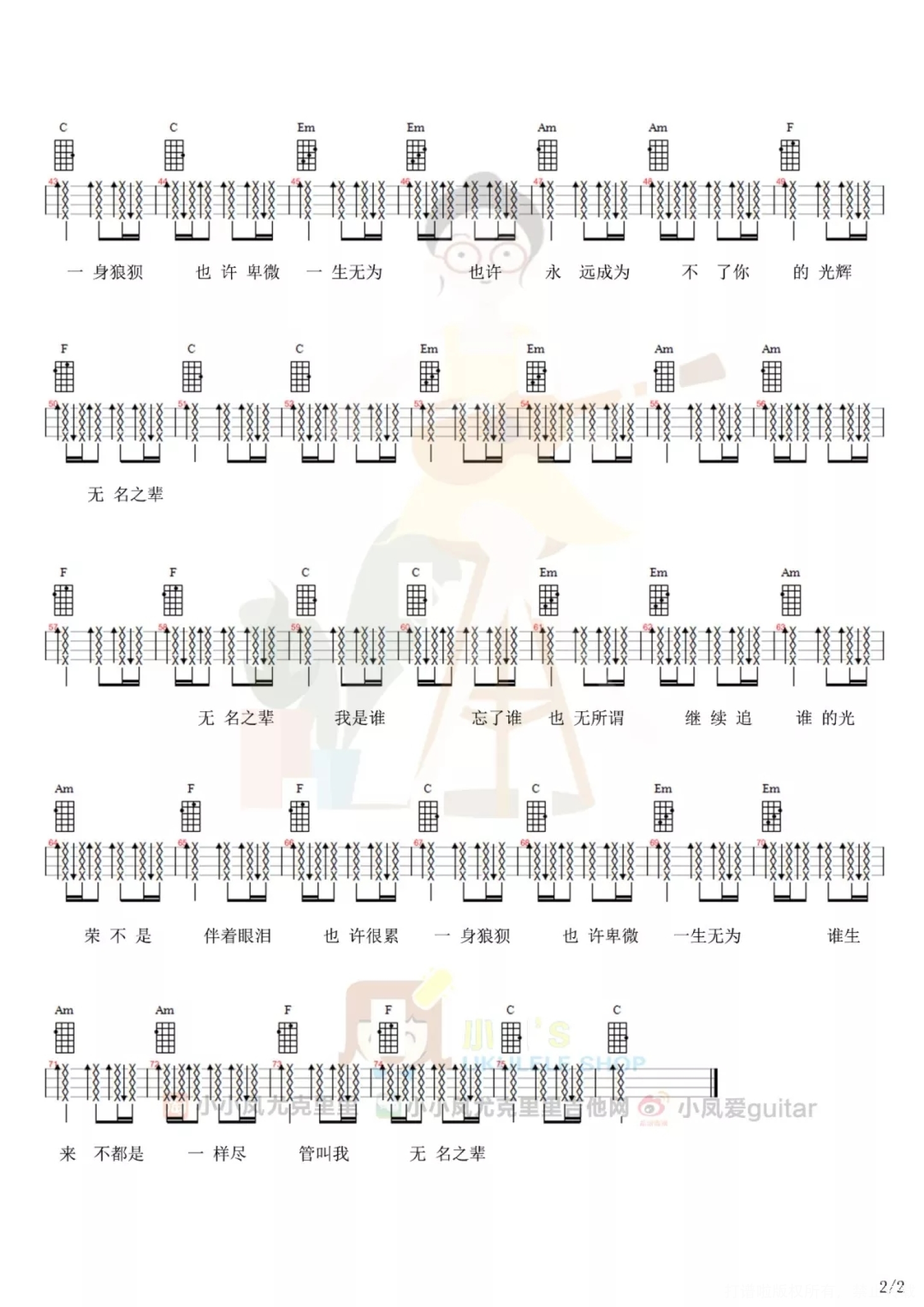 当前位置:琴谱网>尤克里里>无名之辈