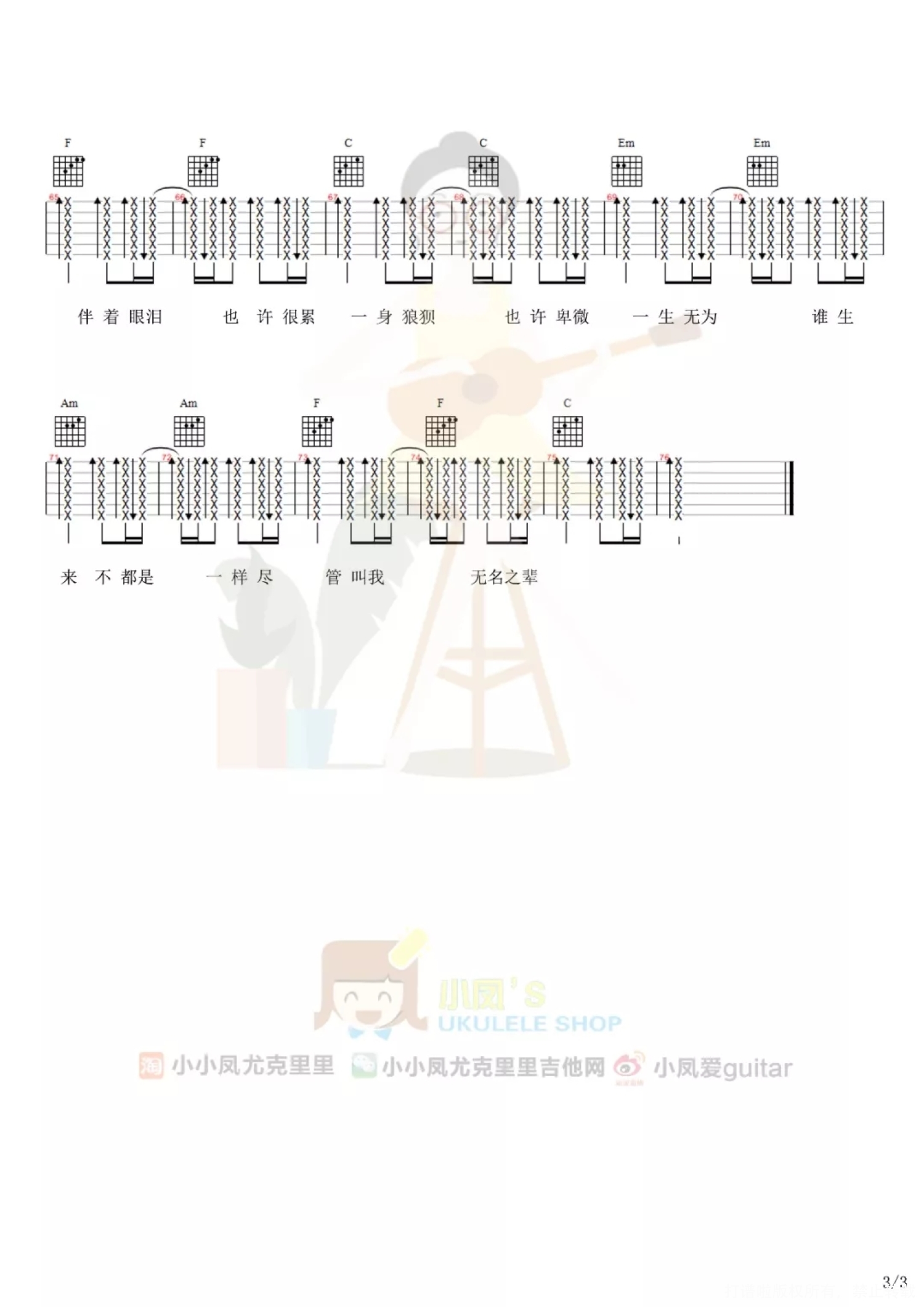 无名之辈尤克里里谱 - 陈雪燃
