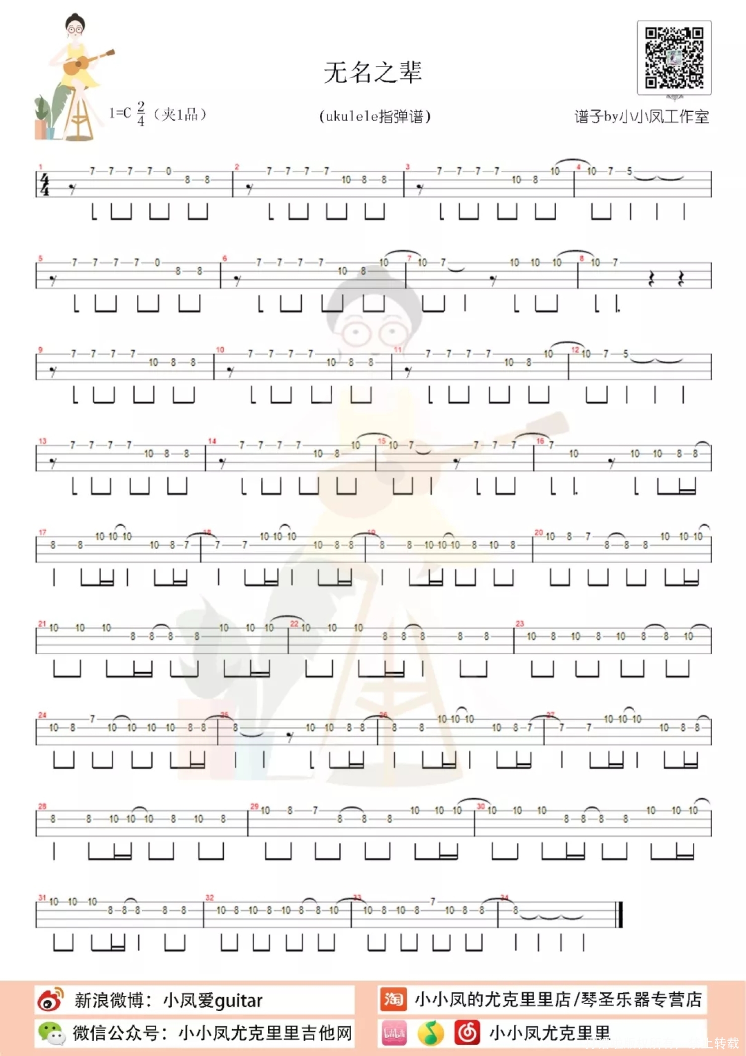 曲谱介绍: 最近被一部电视剧「亲爱的,热爱的」刷爆了朋友圈,身边的小姐姐小妹妹都跟我说,这部剧很好看。 这两天我也忍不住去煲了一下这部剧,看了几集让我最想了解的是,他们所说的(CTF)网络安全大赛究竟是啥玩意? 查了一下资料,给大家科普一下,CTF,它最初的源头,是全球黑客大会。这也就是说,参加比赛的选手,不是玩游戏的网瘾少年,而是真正的职业竞技黑客,他们比拼的,是各自作为黑客的技术。 想了解更多的就自己去查啦,毕竟我们今天跟大家分享的重点还是这部剧的主题曲「无名之辈」嘛,听这首歌配上这部剧的剧情,真的会让人热血沸腾的感觉。 以下跟大家分享一下我和小爱老师一起用尤克里里和吉他合奏的「无名之辈」,这次的尤克里里加了电声的效果器哦。   「无名之辈」吉他尤克里里合奏   「无名之辈」尤克里里谱 「无名之辈」吉他弹唱曲谱 「无名之辈」ukulele指弹谱