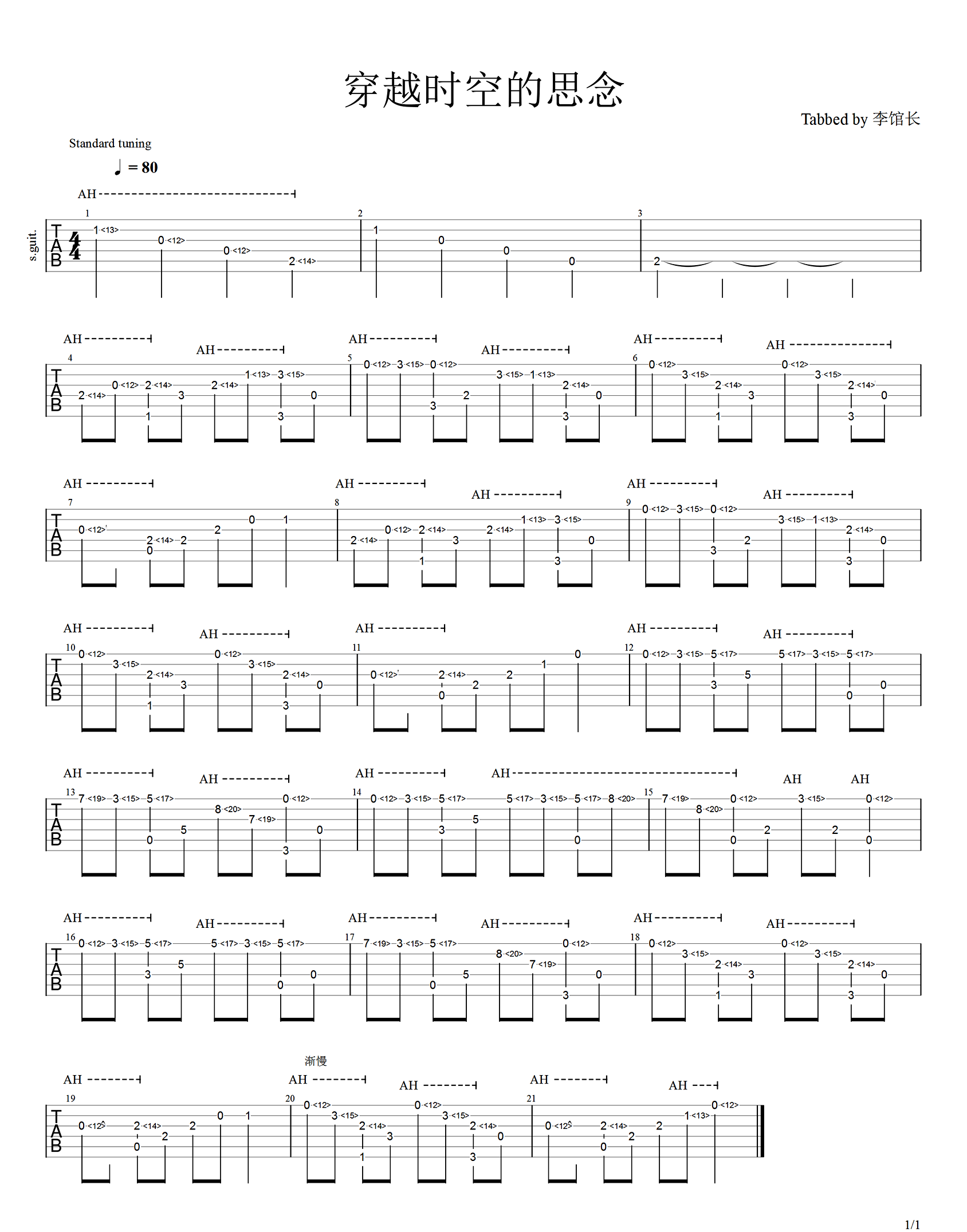穿越时空的思念吉他谱 - 指弹吉他教学 - 吉他独奏谱