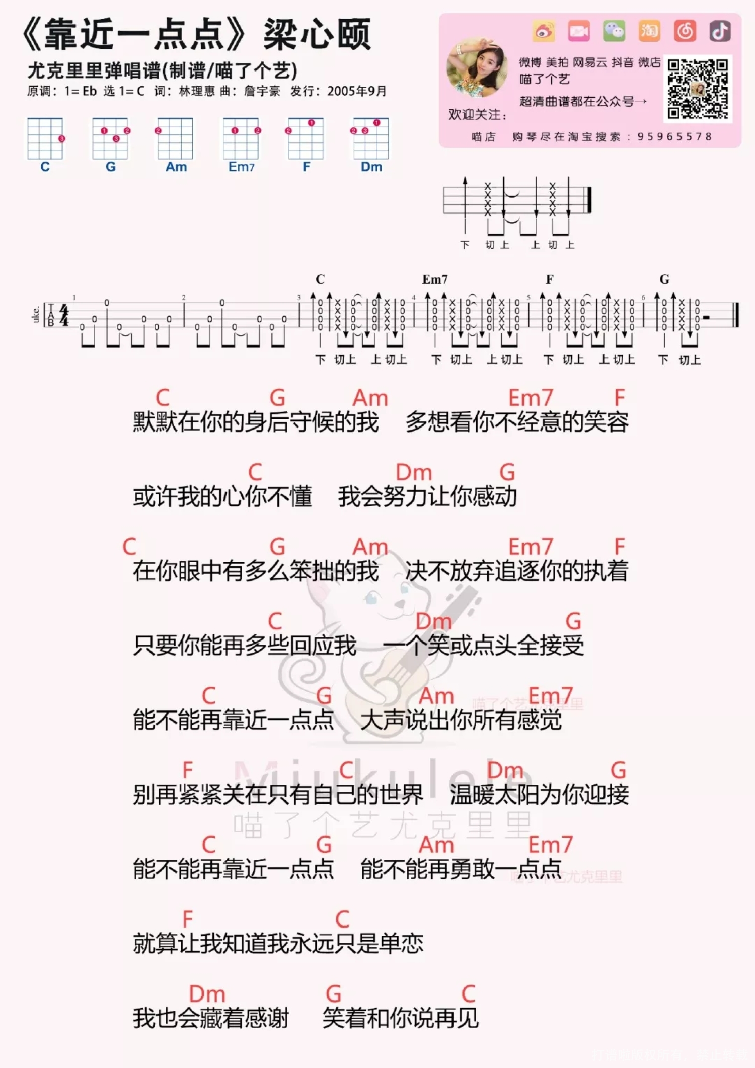 靠近一点点尤克里里谱 - 梁心颐