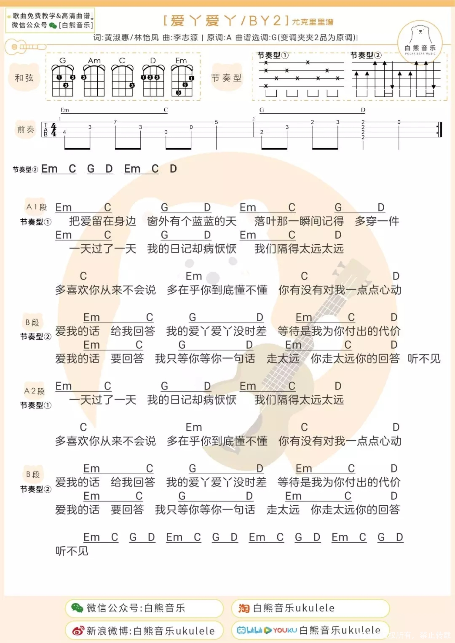 当前位置:琴谱网>尤克里里>爱丫爱丫
