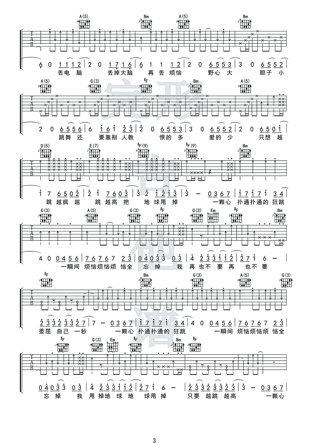 曲谱介绍: 五月天演唱的一首歌曲,4/4拍的节奏,这首歌曲的原调为D调,这里曲谱采用了D调指法进行编配,演唱时可不夹变调夹,曲谱由琴谱网更新上传,来源于@完形吉他编配出品。这首歌在大电影《开心超人》中也用作了片尾曲。这首歌正如阿信所说的颠覆的再颠覆,无论如何都会有人唱反调,既然如此,丢掉那些累赘的东西,丢掉那些烦人的困扰,把一切的烦恼都忘掉,做好自己便好。
